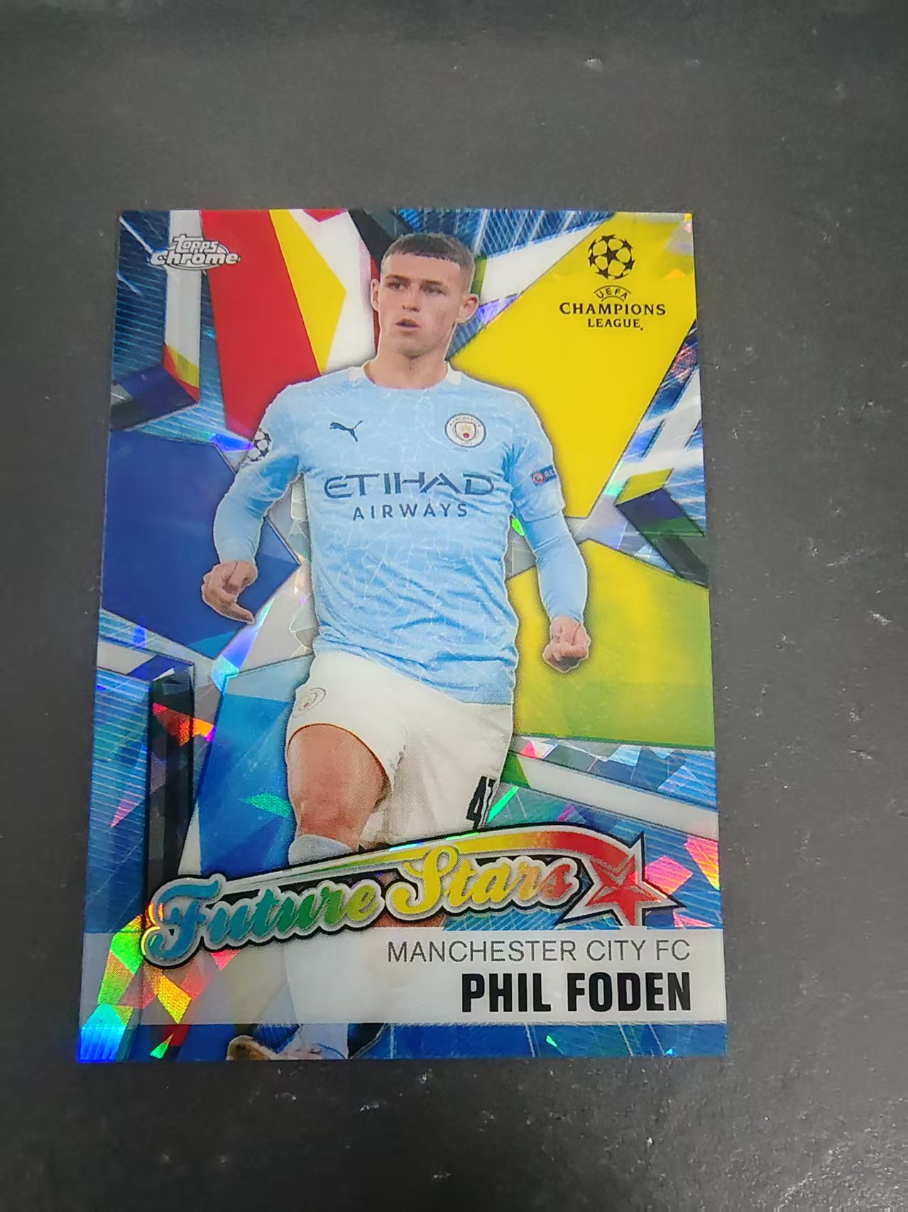 【可合并,不累计】2021 Topps Chrome Phil Foden 欧冠蓝宝石 曼城 太子 福登 未来之星 特卡 碎冰折