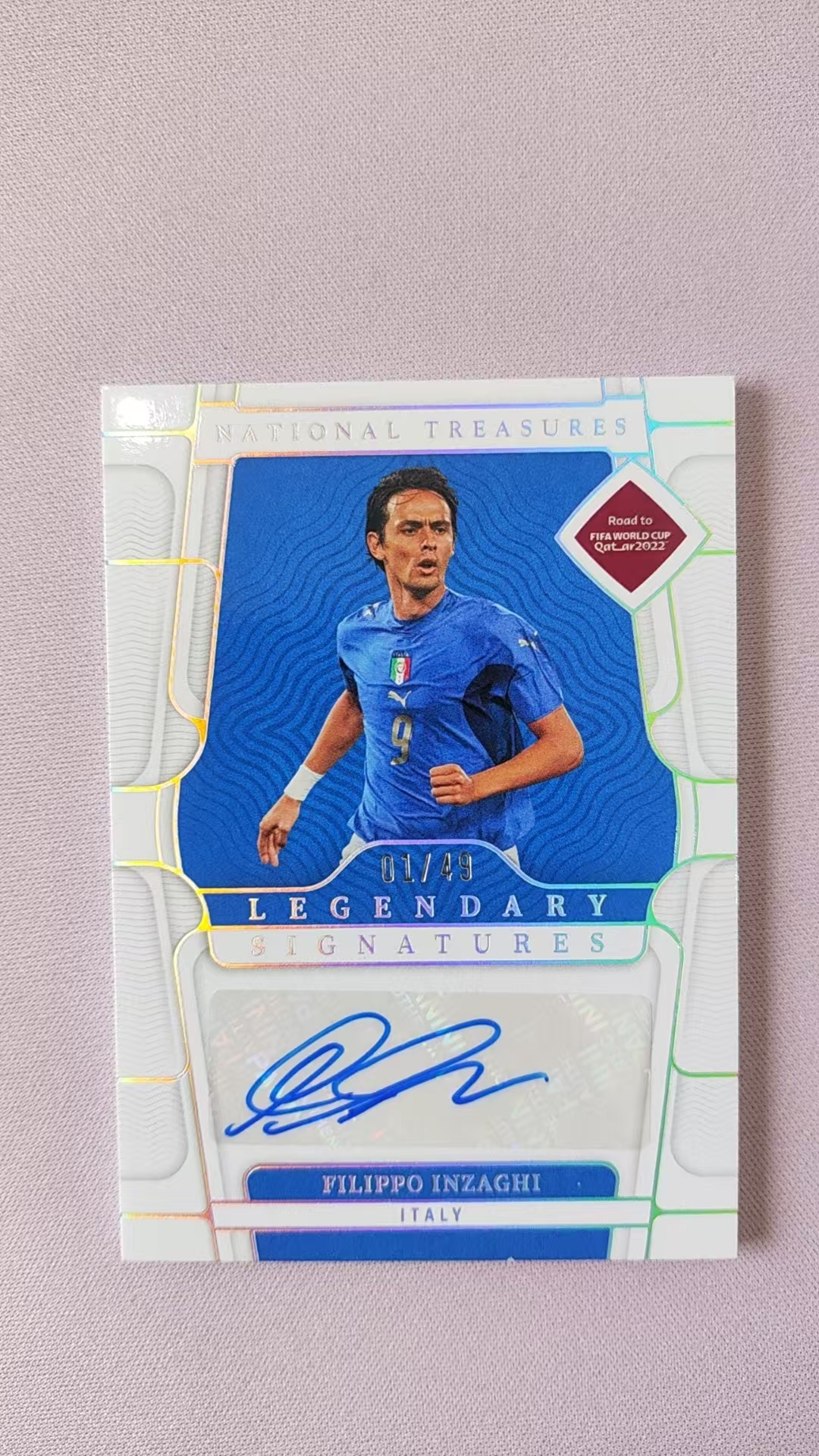 2022 Panini National Treasures Filippo Inzaghi 帕尼尼 国宝高端系列 意大利AC米兰尤文图斯传奇九爷因扎吉 01/49编首编 微瑕如图 完美签字 收藏必备