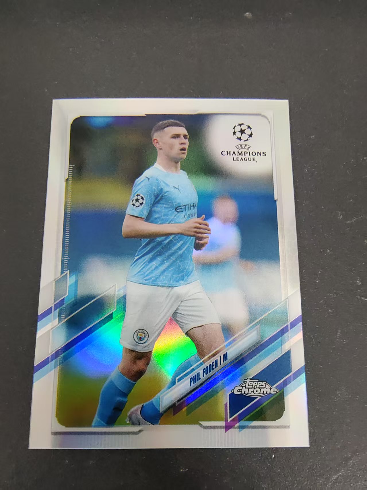【可合并,不累计】2021 Topps Chrome Phil Foden 欧冠 曼城 太子 福登 银折 #34 划痕