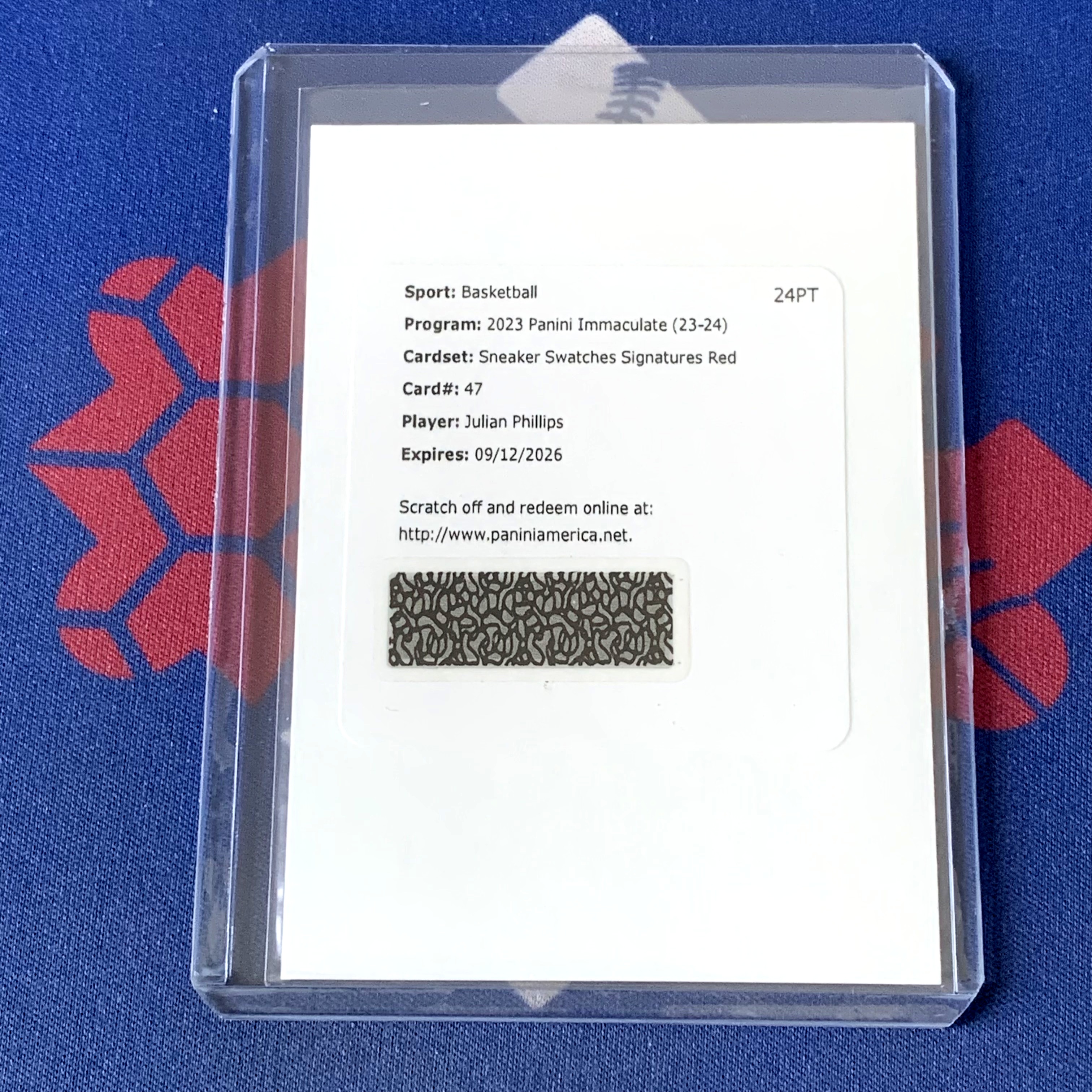 2023-24 Panini Immaculate Julian Phillips 【海宝】公牛 新秀RC 菲利普斯 25编 红折 球鞋签 RPA签字卡 卡签 交换板 未来可期 收藏必备【MYJ】