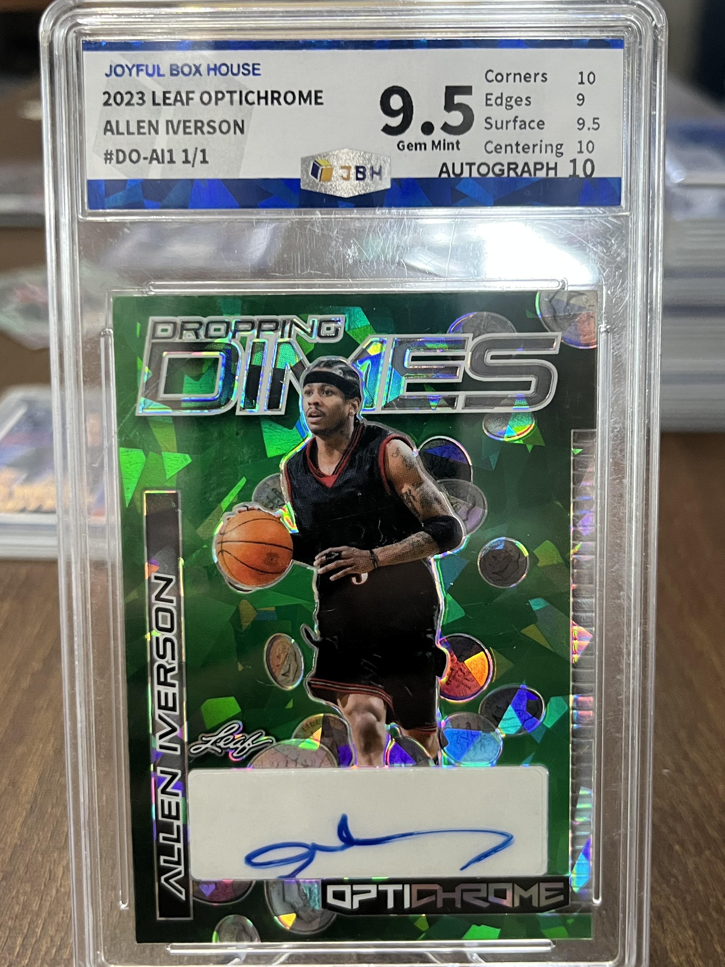 2023 Leaf dropping Allen Iverson 【天台兄弟】程哥 艾伦 艾弗森 签字 贴签 绿碎冰折 1/1编 ofo 签字10分 卡品9.5分 76人 收藏凑套必备 卡品如图