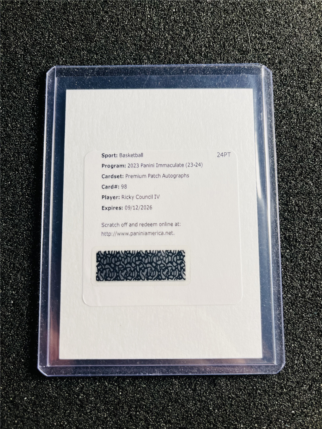 【VC拍卖0手续费到卡预付90%】2023-24 Panini Immaculate 76人 Council 康西尔 四世 RPA 新秀 PP 球衣物料 patch 签字 卡签 交换板——ZF