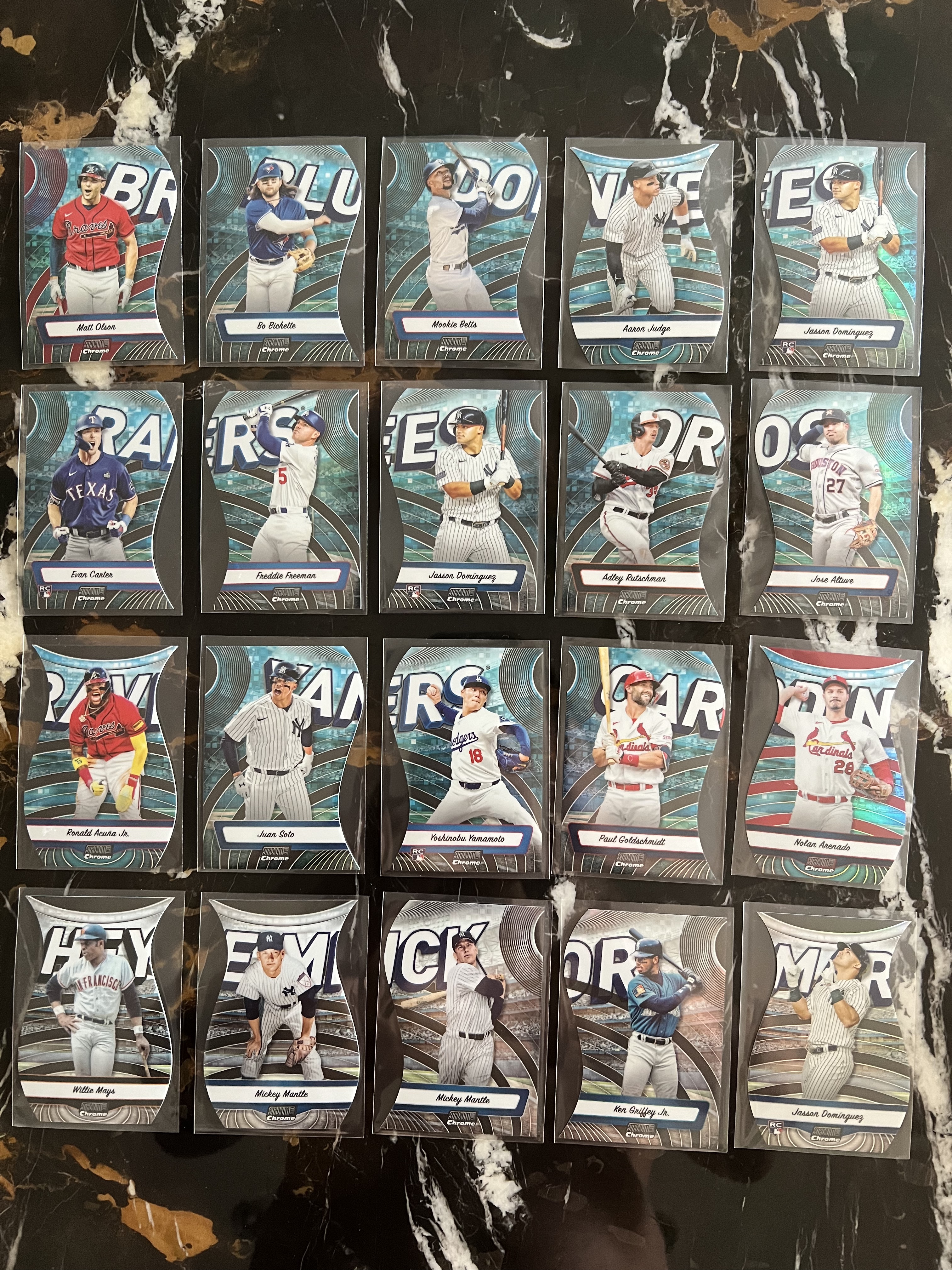 2024 Topps 棒球 竞技场 chrome 20张 异形拼图卡 打包!!索托 山本 小肯格里芬 多明戈兹 小阿库那等好人带队!!卡非常有质感!!凑套必备!!值得收藏!!