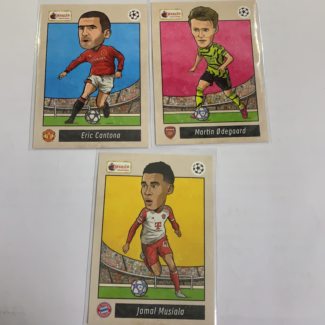 2023-24 Topps Merlin chrome Eric Cantona 梅林 漫画系列 曼联 坎通纳 阿森纳 厄德高 拜仁 穆西亚拉 特卡 卡品如图