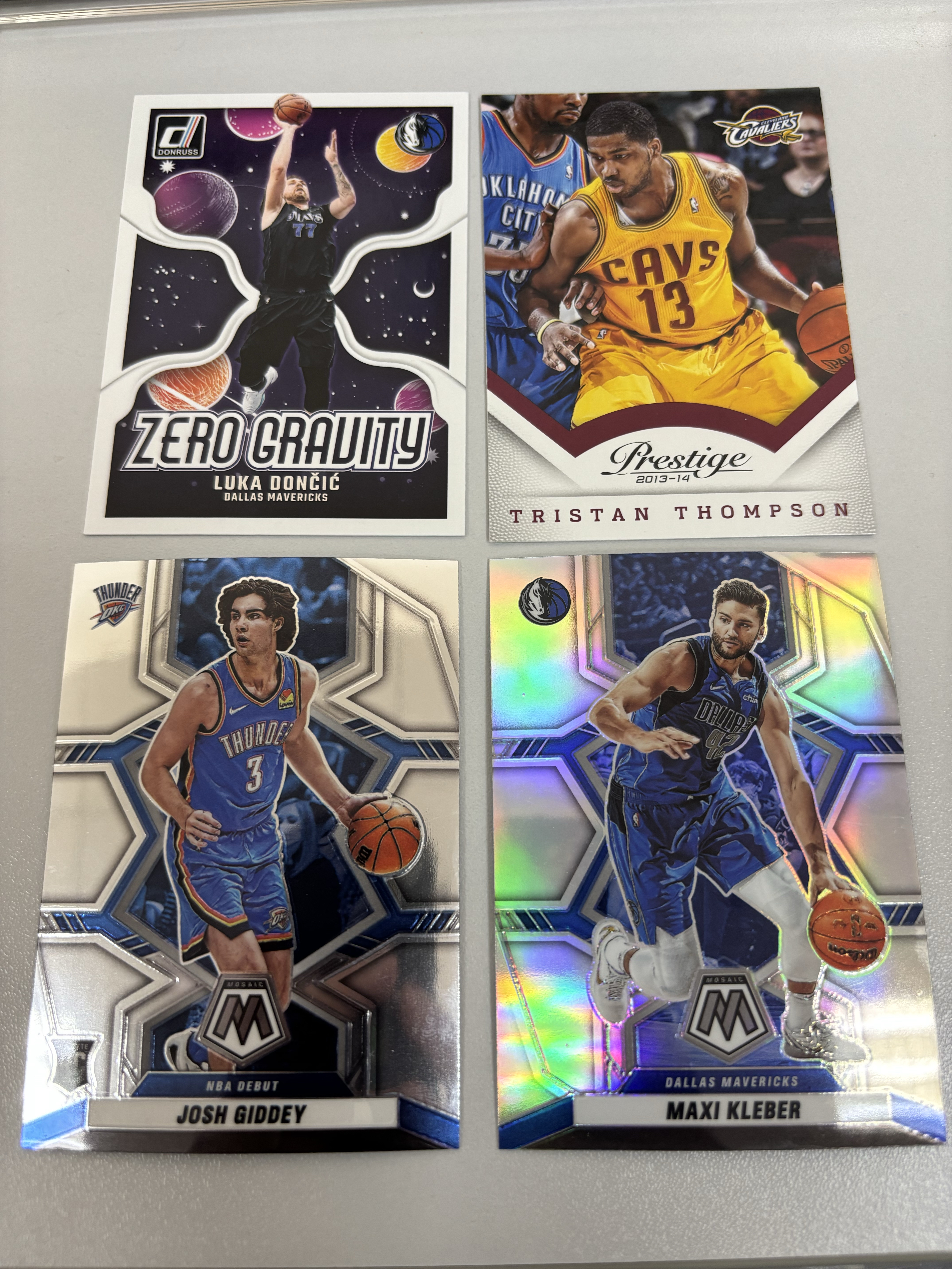 【古力查维度卡】2024-25 panini donruss 杜蕾斯 LUKA DONGIC 东契奇 小牛 零重力特卡 汤普森 荣耀等4张卡片打包 实卡精美 收藏必备 卡品如图 拍前请阅读描述