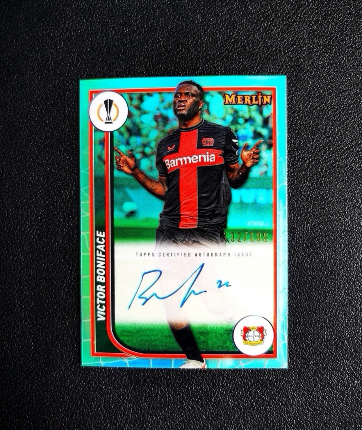 2023-24 Topps Merlin Victor Boniface 欧战 梅林 勒沃库森 博尼费斯 博尼法斯 132/199编 签字 青折 完美签 锋线尖刀 豪门猎物 实卡精美 专收必备【H5】