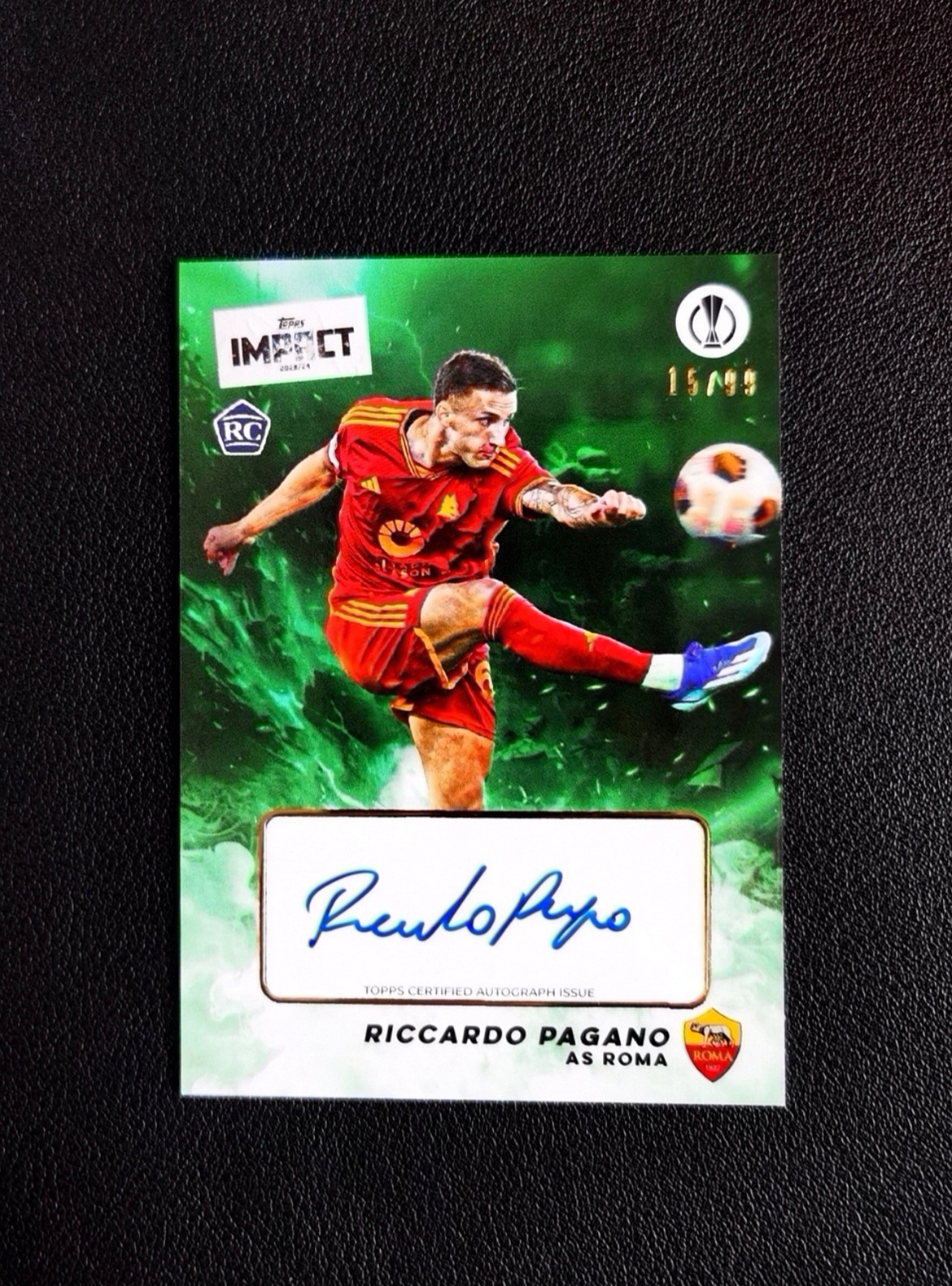 2023-24 Topps Impact Riccardo Pagano RC 欧冠冲击盒 罗马 新秀RC 里卡多 帕加诺 99编 签字 绿折 完美签 潜力中场 实卡精美 收藏必备【K5】