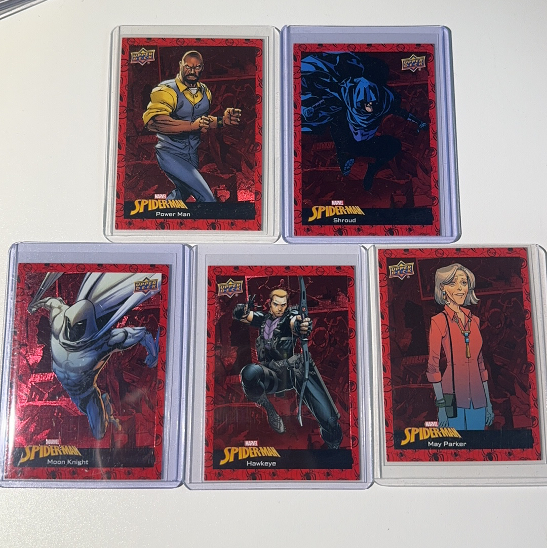 【大婷卡社】2023 Upper Deck Marvel Spider Man Scarlet Spider 蜘蛛侠挂包 红平行特卡 五张打包 月光骑士等 卡品如图 收藏必备(被窝)