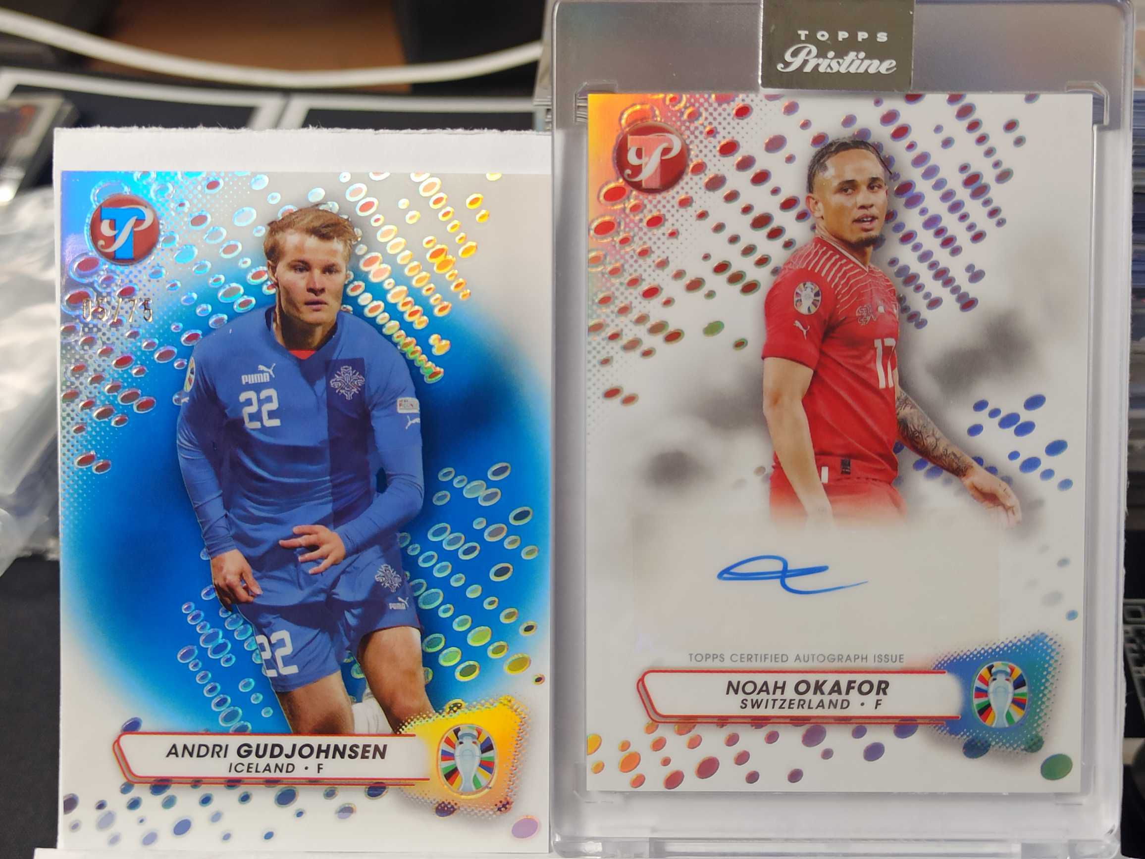 2023ToppsPristine 欧洲杯太古 NoahOkafor奥卡福尔签字+古德约翰森5/75编 斑点特卡 瑞士 签字 原封砖 双人打包Lot 足球 卡品如图【靓星代拍】#至方