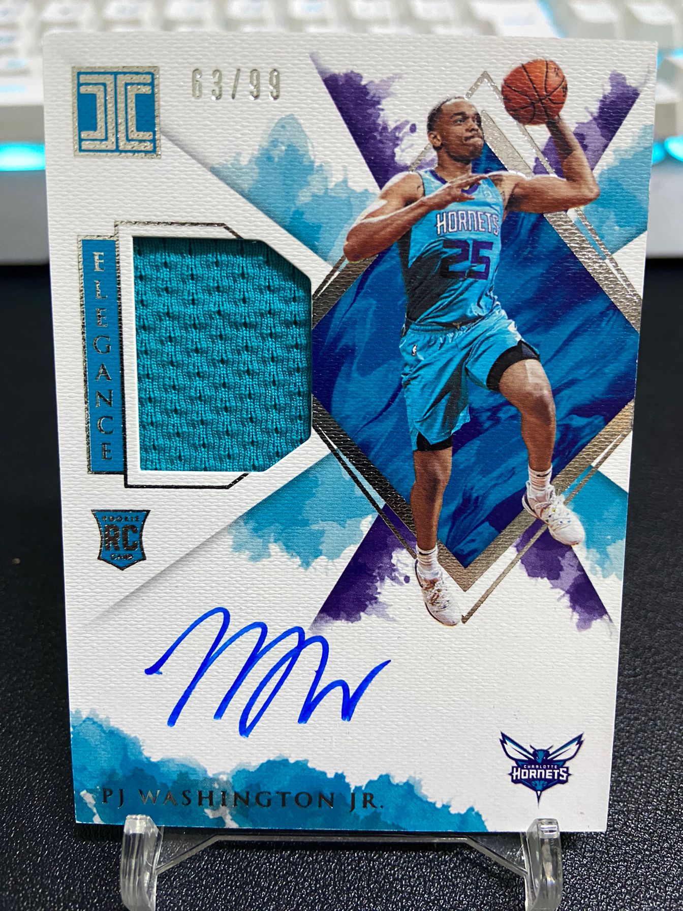 【浩行拍卖 截标预付82%】2019-20 panini impeccable pj washington jr 小真金 黄蜂 pj 华盛顿 RC 新秀 签字 卡签 球衣 物料 RJA 63/99编 瑕疵看图「强光」0503D03恁