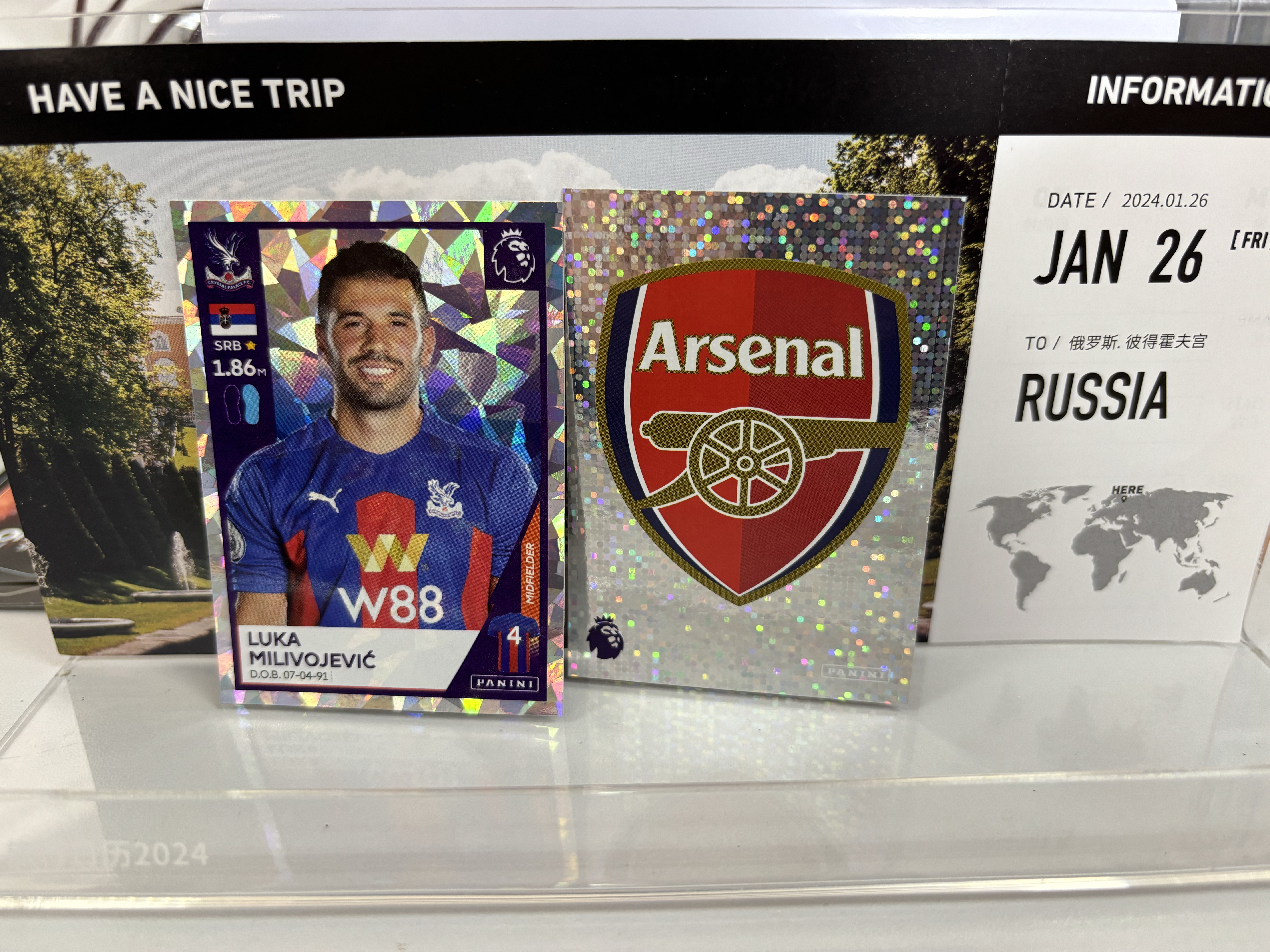 【古力查维度卡】panini 2021 英超贴纸 Arsenal 阿森纳 队徽 碎点折 MILIVOJEVIC 米利沃耶维奇 塞维利亚 水晶宫 实卡精美 收藏必备 品相自观 拍前请阅读详情