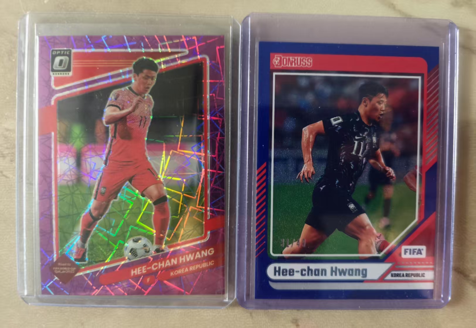 【lolww】多年份 donruss optic fifa世界杯 hee chan hwang 韩国 黄喜灿 99编 紫折 49编 蓝折 两张折射LOT打包 BOB刘