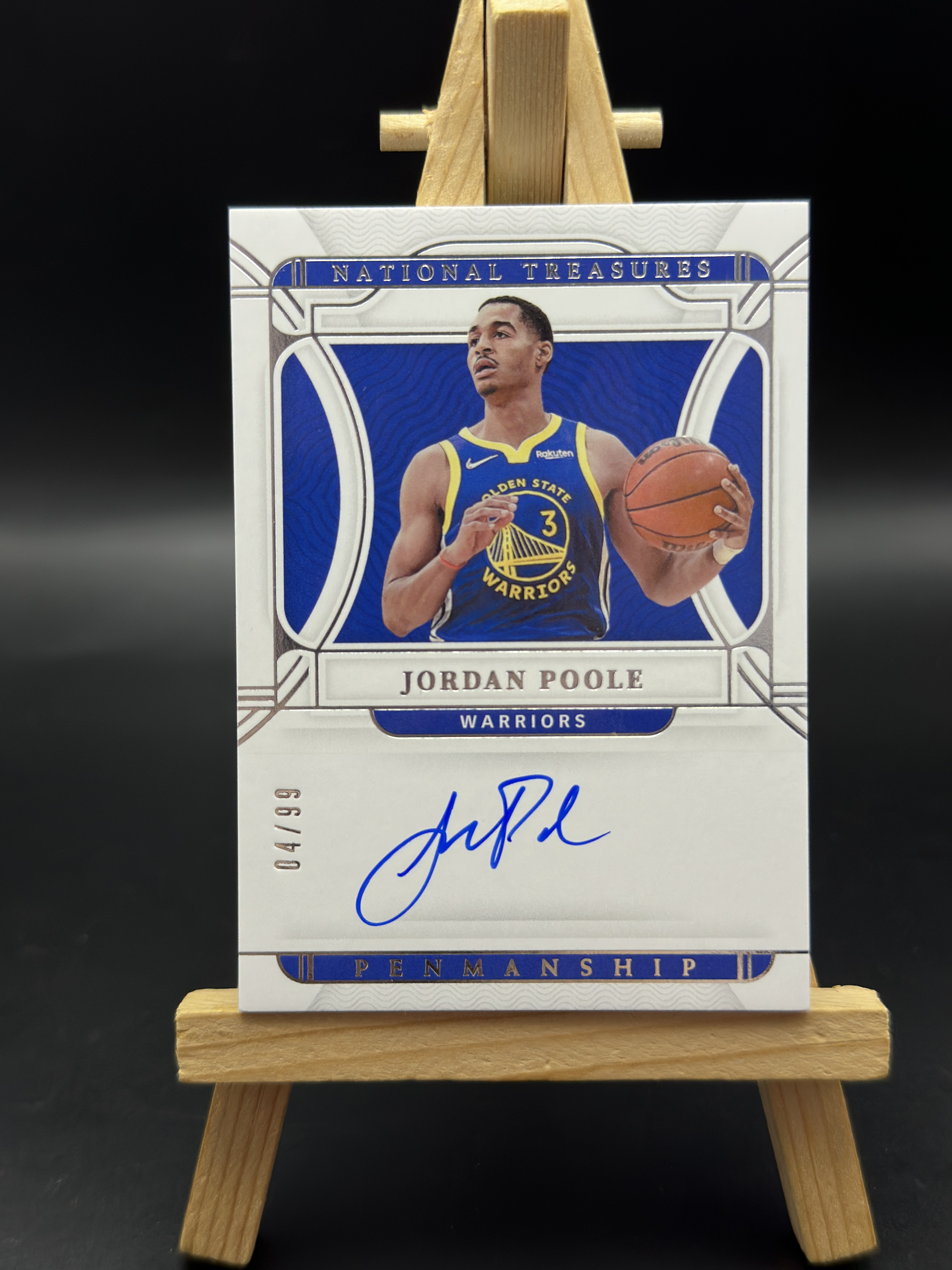 2021-22 Panini National Treasures Jordan Poole 国宝 勇士 乔丹 普尔 04/99 Penmanship 签字 卡签 微瑕如图 稀有款