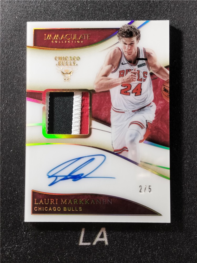 【LA拍卖】2019-20 Panini Immaculate Lauri Markkanen 劳里 马尔卡宁 芬兰司机 骑士 爵士 公牛 镜面 金闪版 PA /5编 超低编 GU三色Patch 卡签签字 瑕疵如图 乐乐64