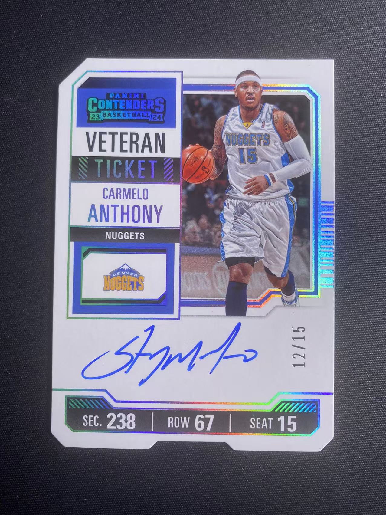 2023-24 【六六代卖 预付快速回款】 Contenders Carmelo Anthony 卡梅罗安东尼 甜瓜 球票 12/15编 同背号编 卡签签字 掘金 异形 票根 专收必备(煎饼5)