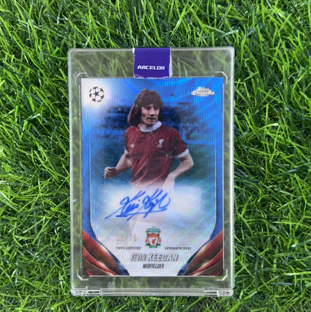 2024 Topps Chronicles Kevin Keegan 欧冠Chrome系列 利物浦 名宿 基刚 签字 签名 75编 蓝波纹折射 墨迹完美极具收藏价值 未来必涨