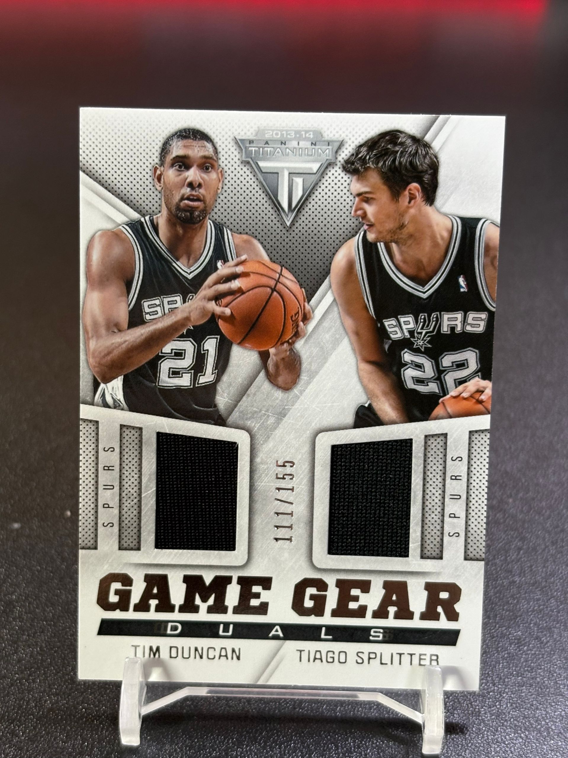 【浩行拍卖 截标预付82%】2013-14 panini titanium 泰坦 马刺 蒂姆 邓肯 蒂亚戈 斯普利特 双人 球衣 物料 111/155编 瑕疵看图 专收必备「示范」0507F05鍾