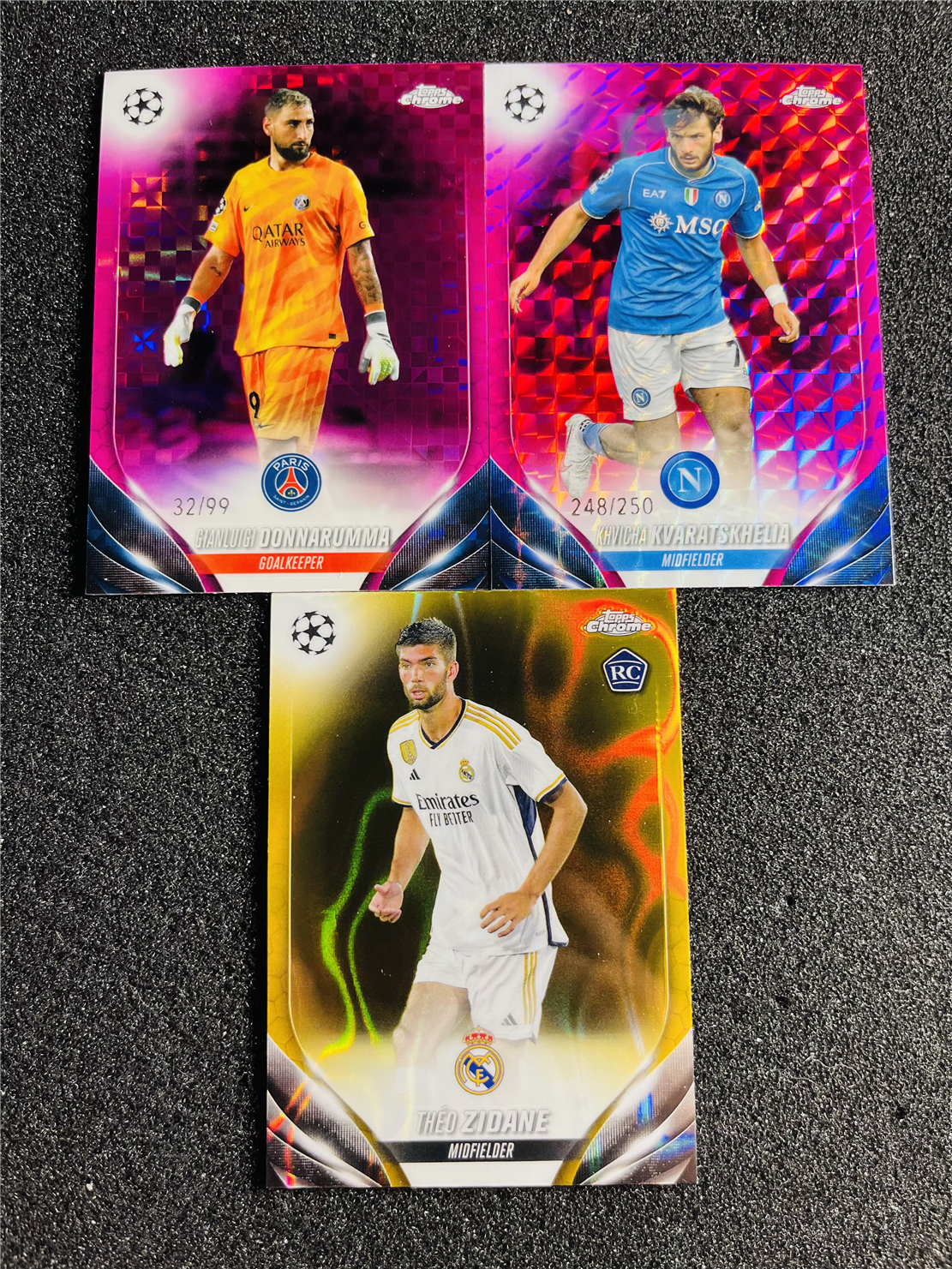 【VC拍卖0手续费到卡预付90%】2023-24 Topps Chrome UCL 欧冠 多纳鲁马 特奥 齐达内 克瓦拉茨赫利亚 马赛克折 紫折 熔岩折 棋盘折 250 99编 一图打包——SZH