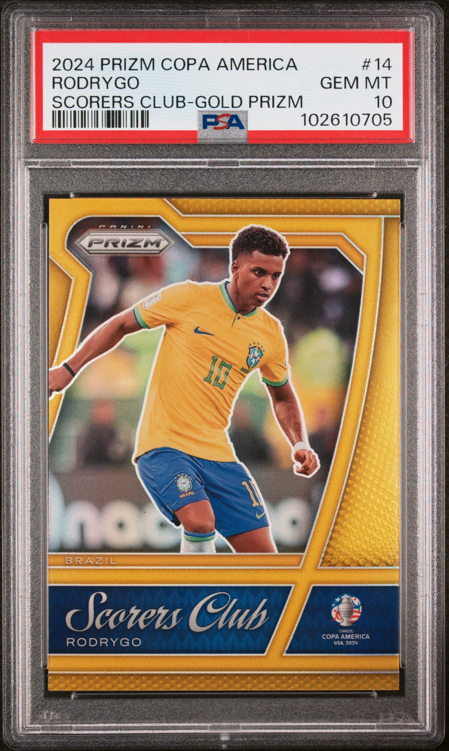 2024 Panini PRIZM CONMEBOL COPA AMERICA SCORERS CLUB Rodrygo 罗德里戈PSA10美洲杯10/10尾编三同背金折 小罗总 皇家马德里 巴西 皇马