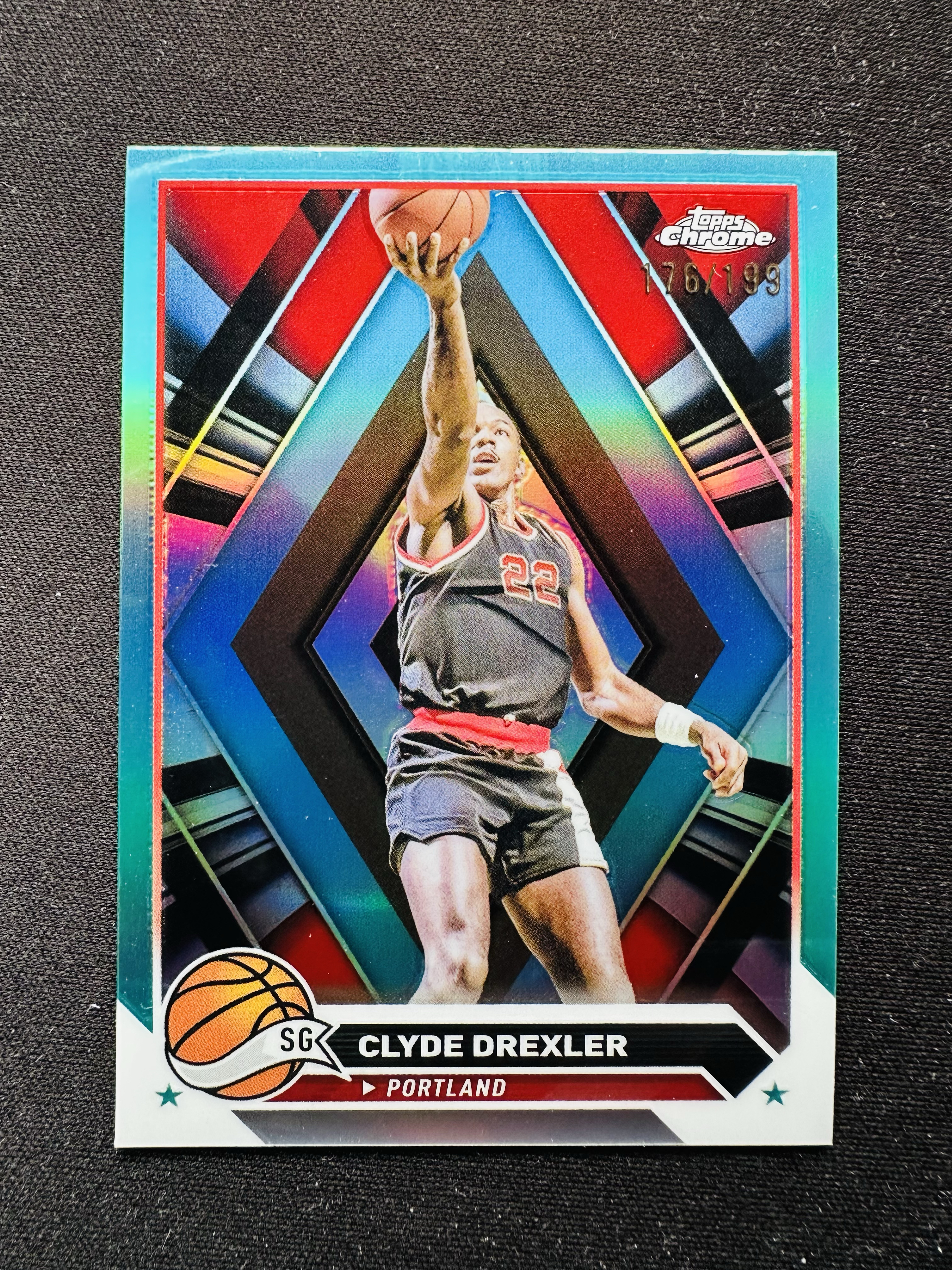 【业勋】Topps2024NBA chrome 滑翔机克莱德德雷克斯勒Clyde Drexler火箭队 青折射176/199编 细节见图!骰子