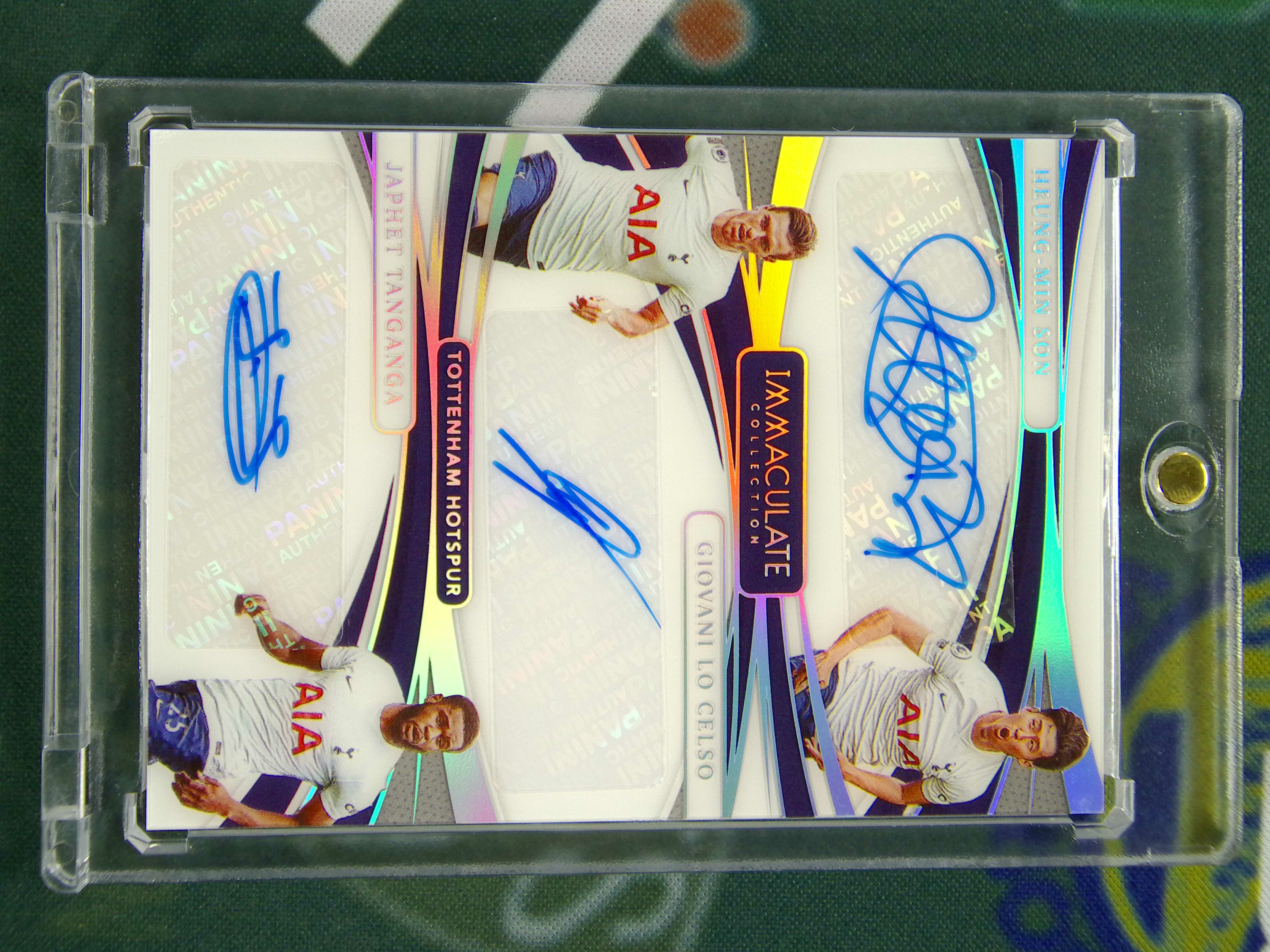 2021 Panini Immaculate Heung-Min Son 【LZK 5ZR385】IMM 孙兴慜 洛塞尔索 坦甘加 三人签字 07/49编 孙兴慜同背 镜面 微瑕
