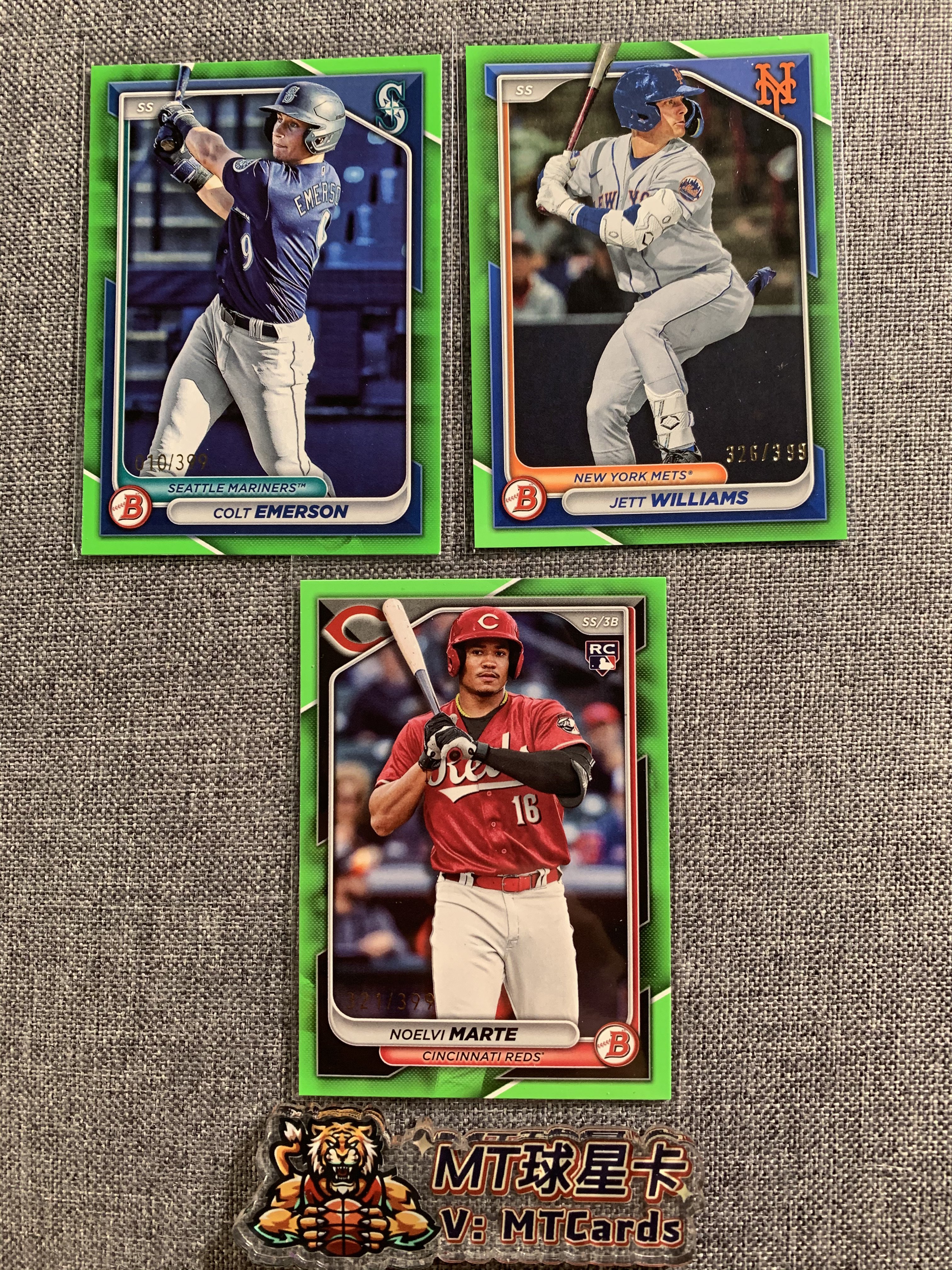 【MT球星卡】2024 Topps Bowman 棒球 /399编 绿平行 杰夫 威廉姆斯 千柯尔特 艾默生 诺埃尔维 马尔蒂 马特 base 3张lot打包 16Hao