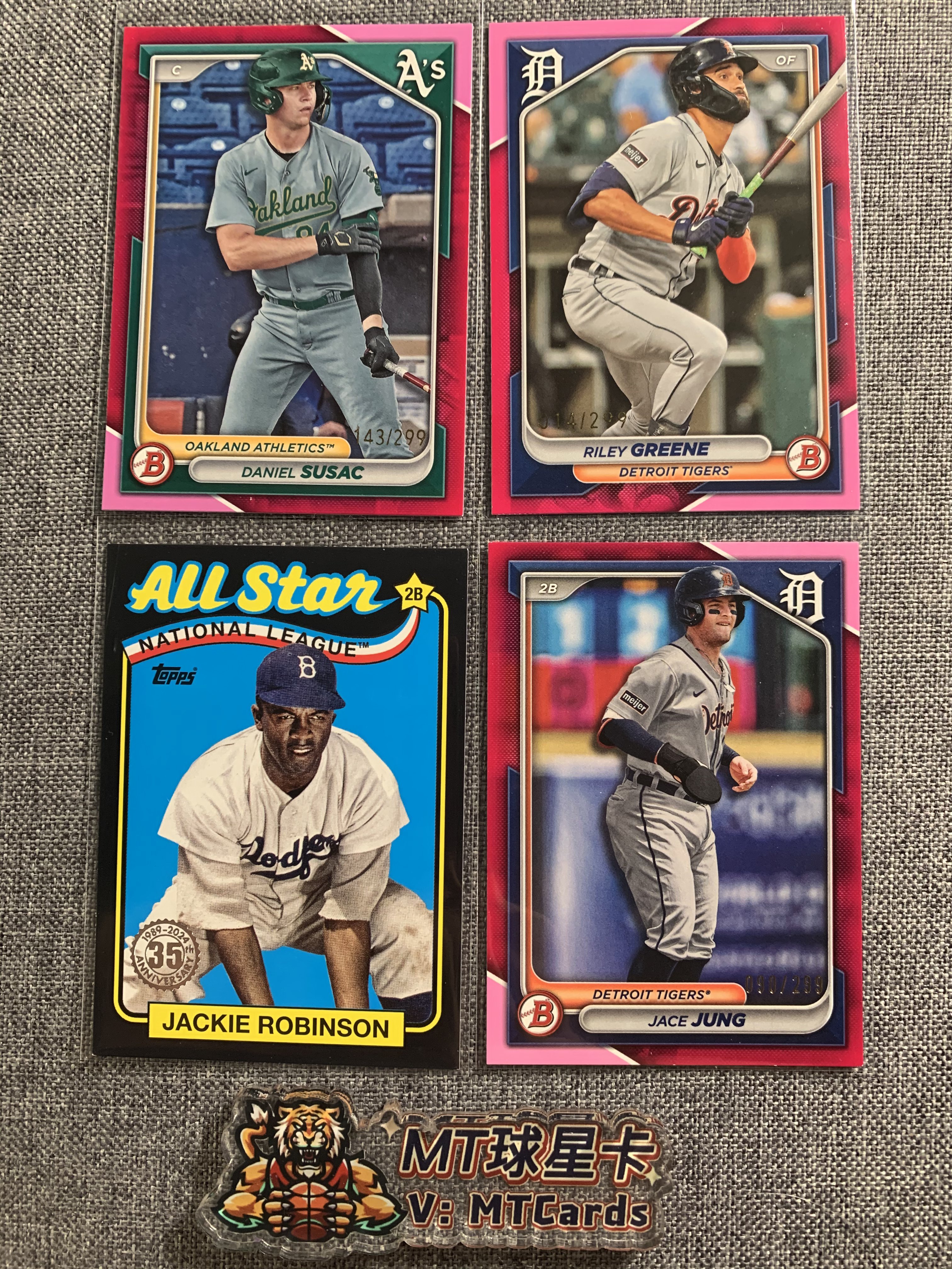 【MT球星卡】2024 Topps Bowman 棒球 /299编 粉平行 丹尼尔 苏萨克 赖利格林 杰西 杰斯 容 ALL Star特卡 杰基 罗宾逊 黑平行 base 4张lot打包 18Hao