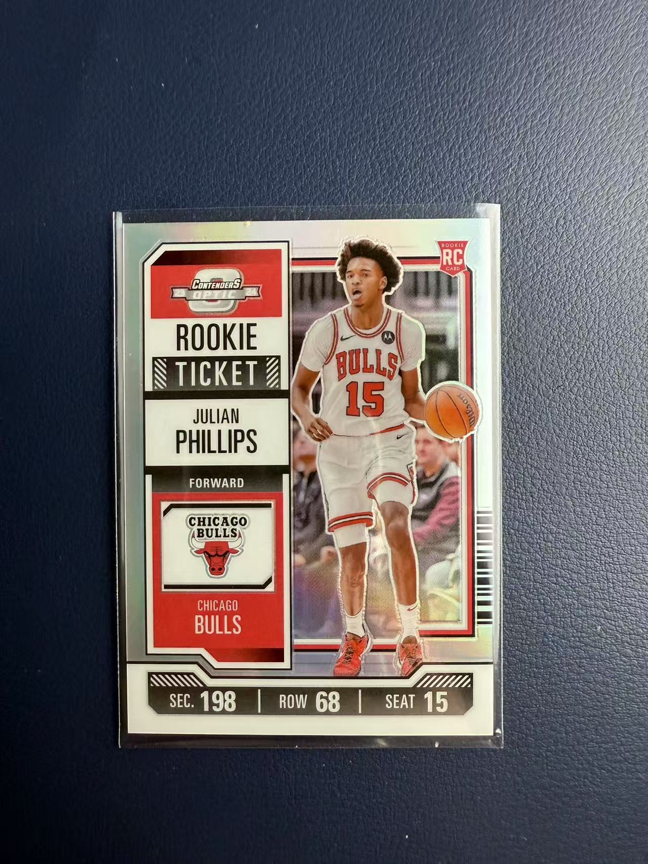 2023-24 Panini Contenders Optic Julian Phillips RC 朱利安 菲利普斯 公牛队 新秀RC 潜力新秀 未来可期 球票OP 正银折 折射 选图超帅 卡品如图