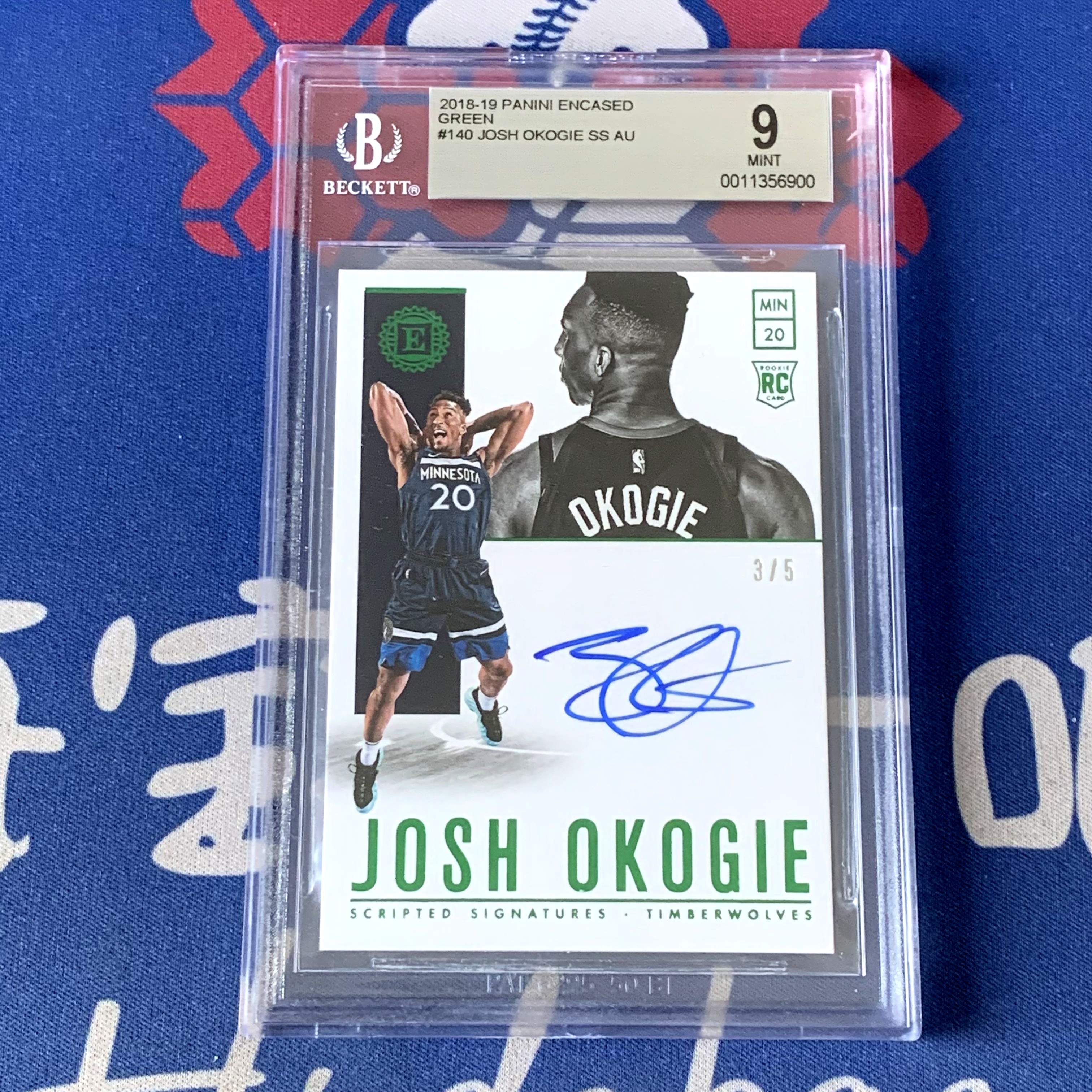 2018-19 Panini Encased Josh Okogie 【海宝】森林狼 新秀RC 约什奥科吉 奥科奇 5编 超低编 绿宝石 双选图签字卡 卡签 BGS9/10分 收藏必备【Lin】