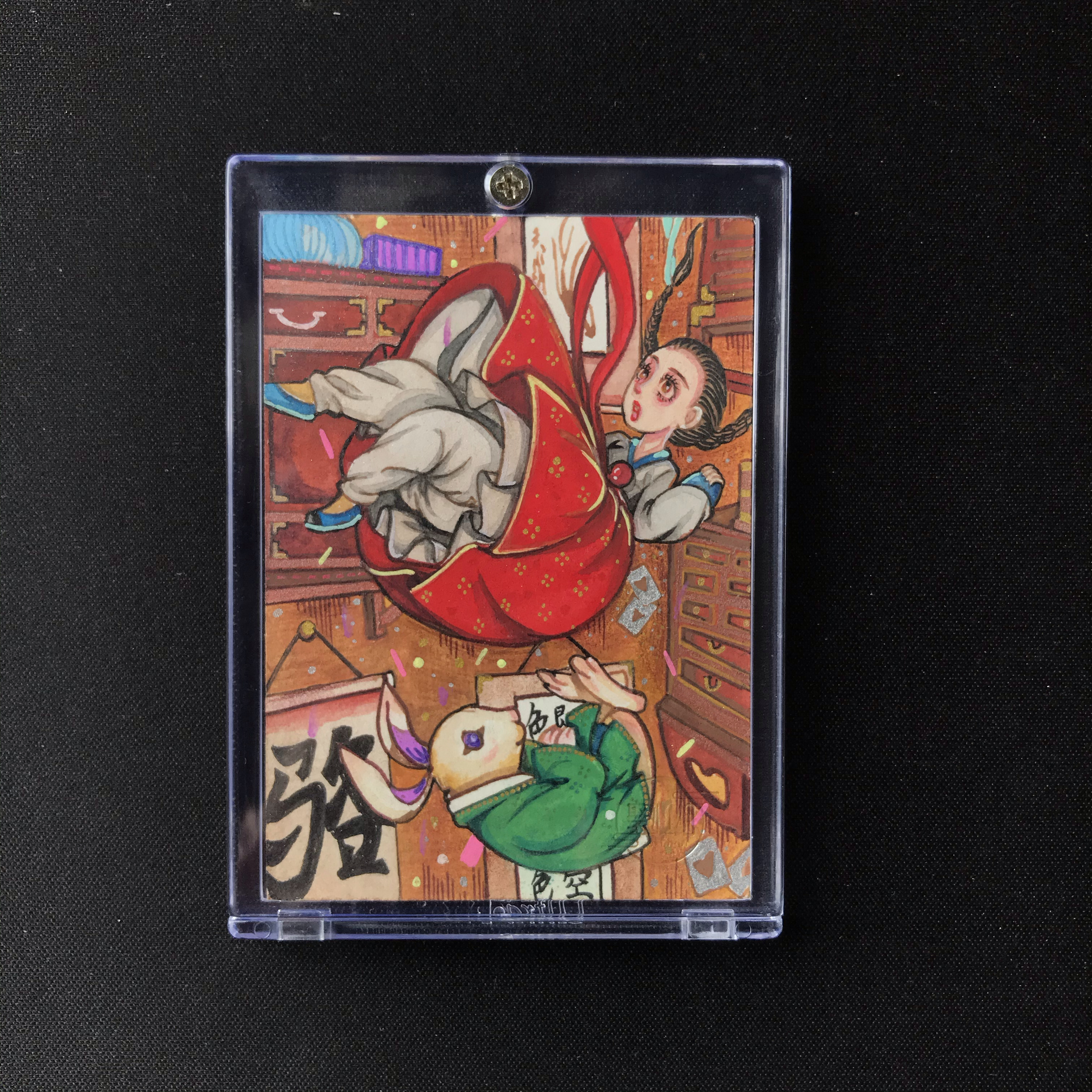聚心绘工作室手绘卡 奇遇系列 小女孩和兔子 1/1手绘卡 画师:歌骆 画功很棒 非常漂亮