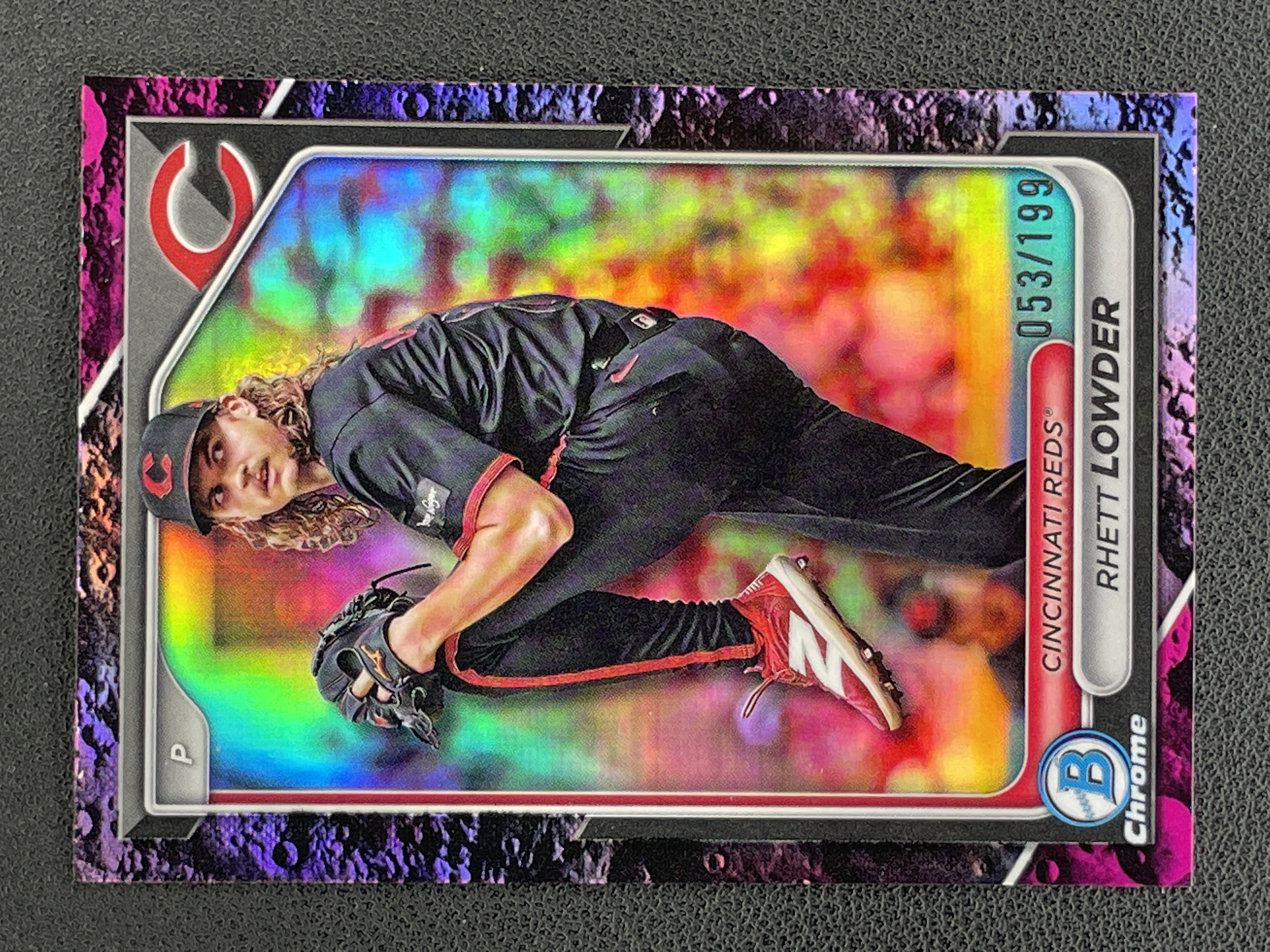 2024 Topps Bowman Draft Chrome Rhett Lowder 【禄卡拍卖】雷特 劳德 紫月球折 199编 辛辛那提红人 5.9-JJB-009