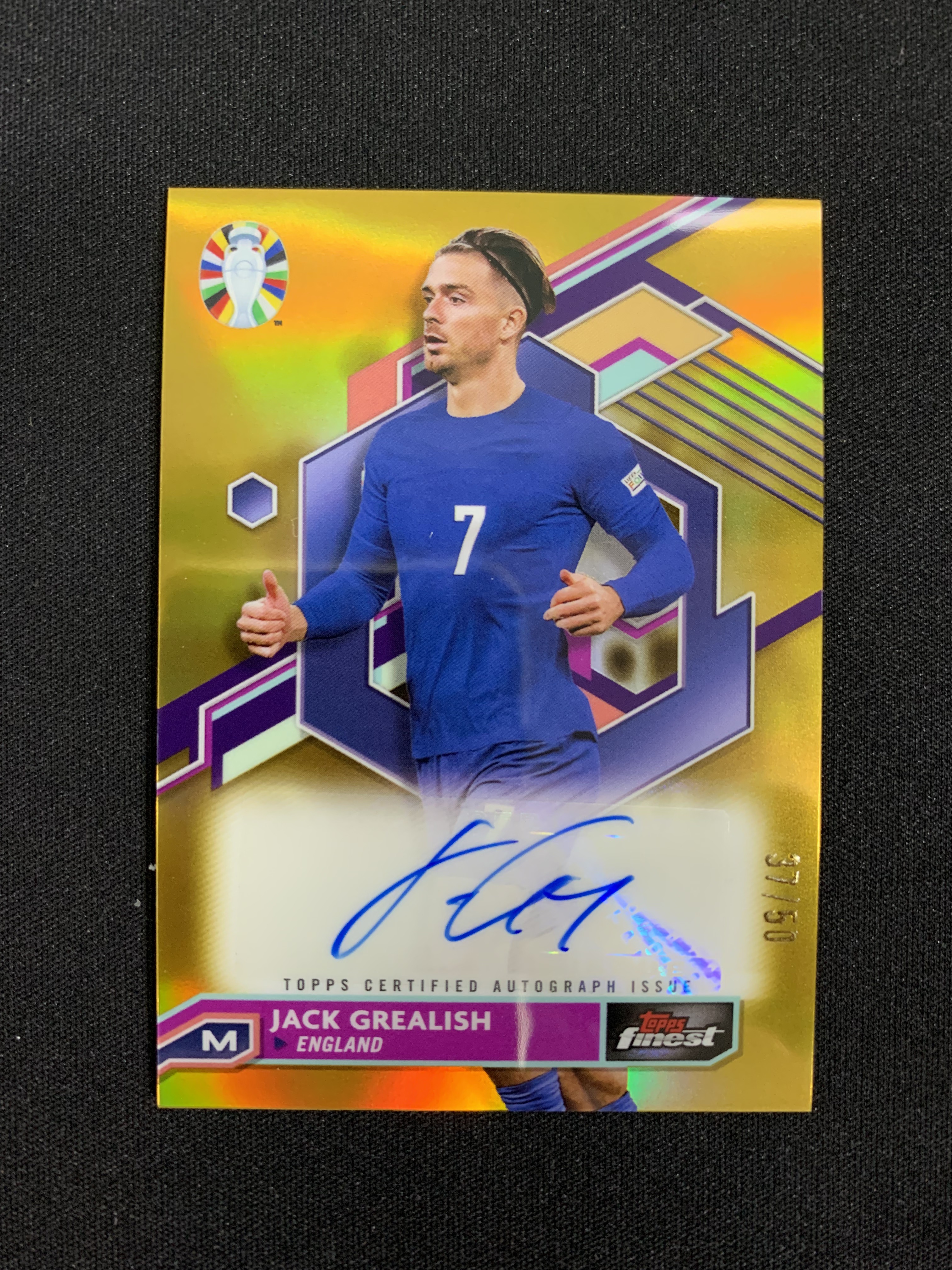 2023 Topps Finest Jack Grealish 欧洲杯 英格兰 格拉利什 37/50编 金折 签字 墨迹如图 卡品如图 值得收藏,绮01F