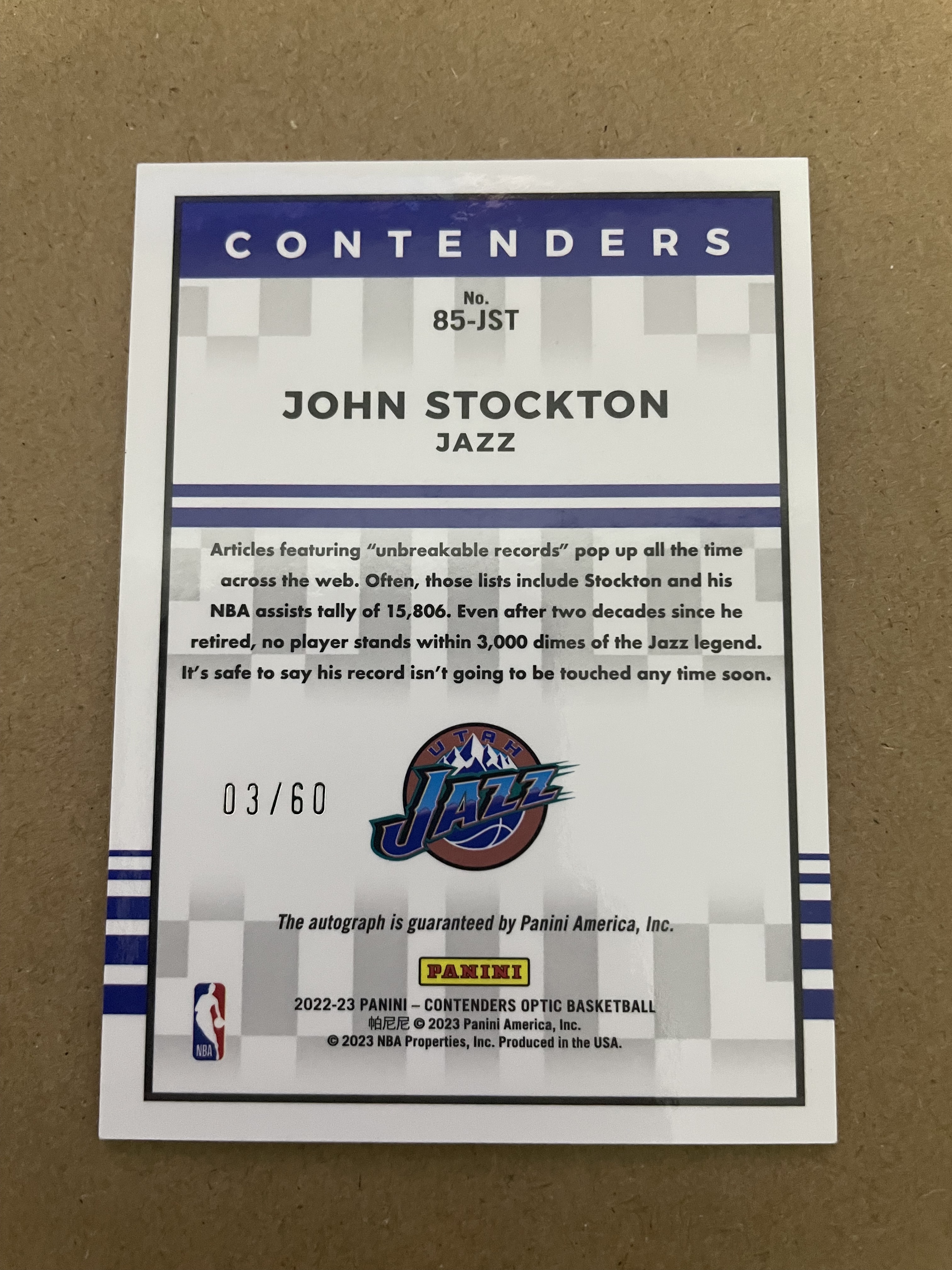 2022-23 Panini Contenders Optic John Stockton 球票op 爵士队 名宿 约翰 斯托克顿 复古签 红折 签字 卡签 03/60编