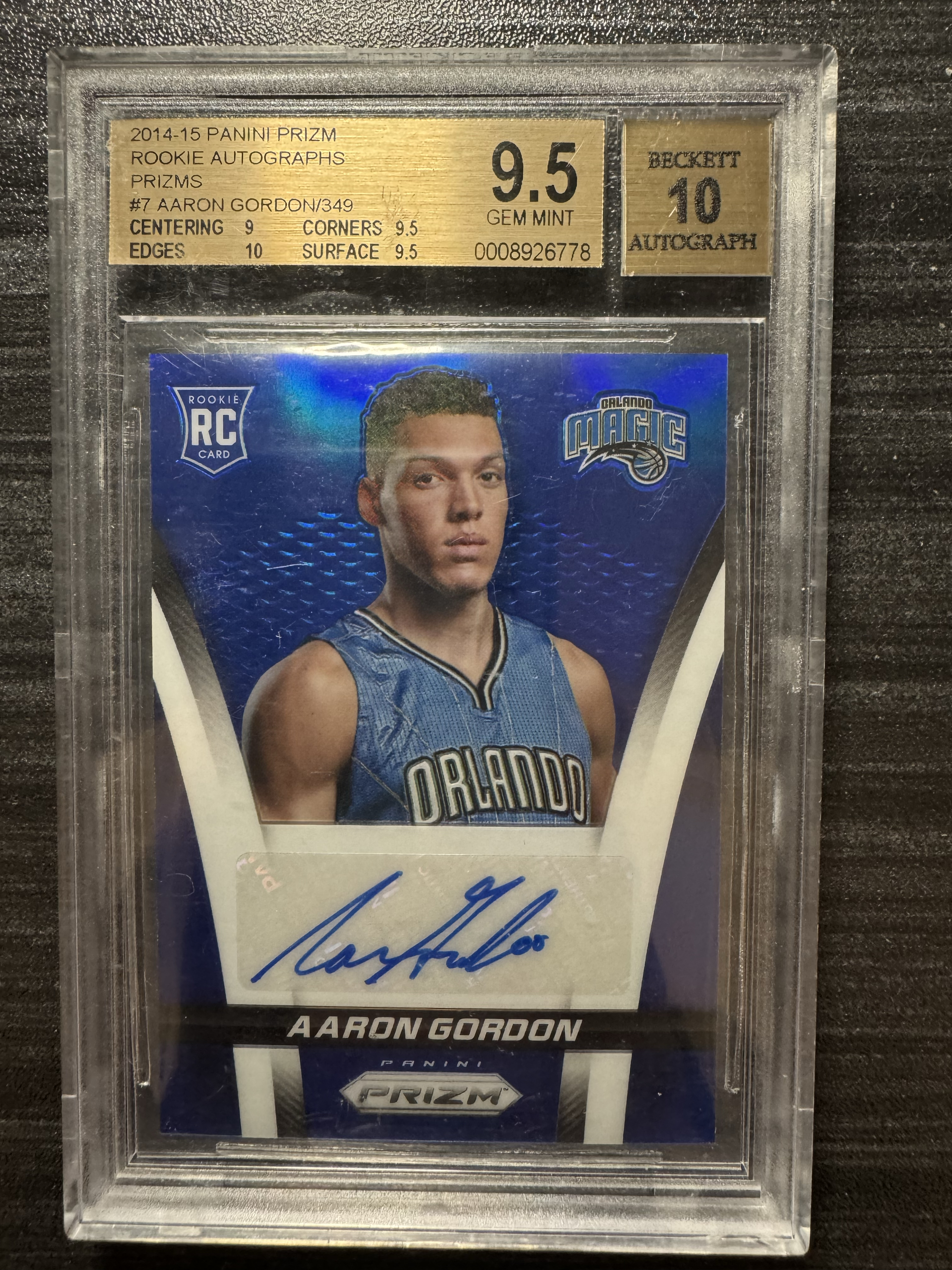 2014-15 Panini Prizm Aaron Gordon RC 阿隆 戈登 新秀 prizm 蓝折 349编 bgs卡品9.5 签字10分 掘金 历史级别 季后赛绝杀 卡品如图 专收必备