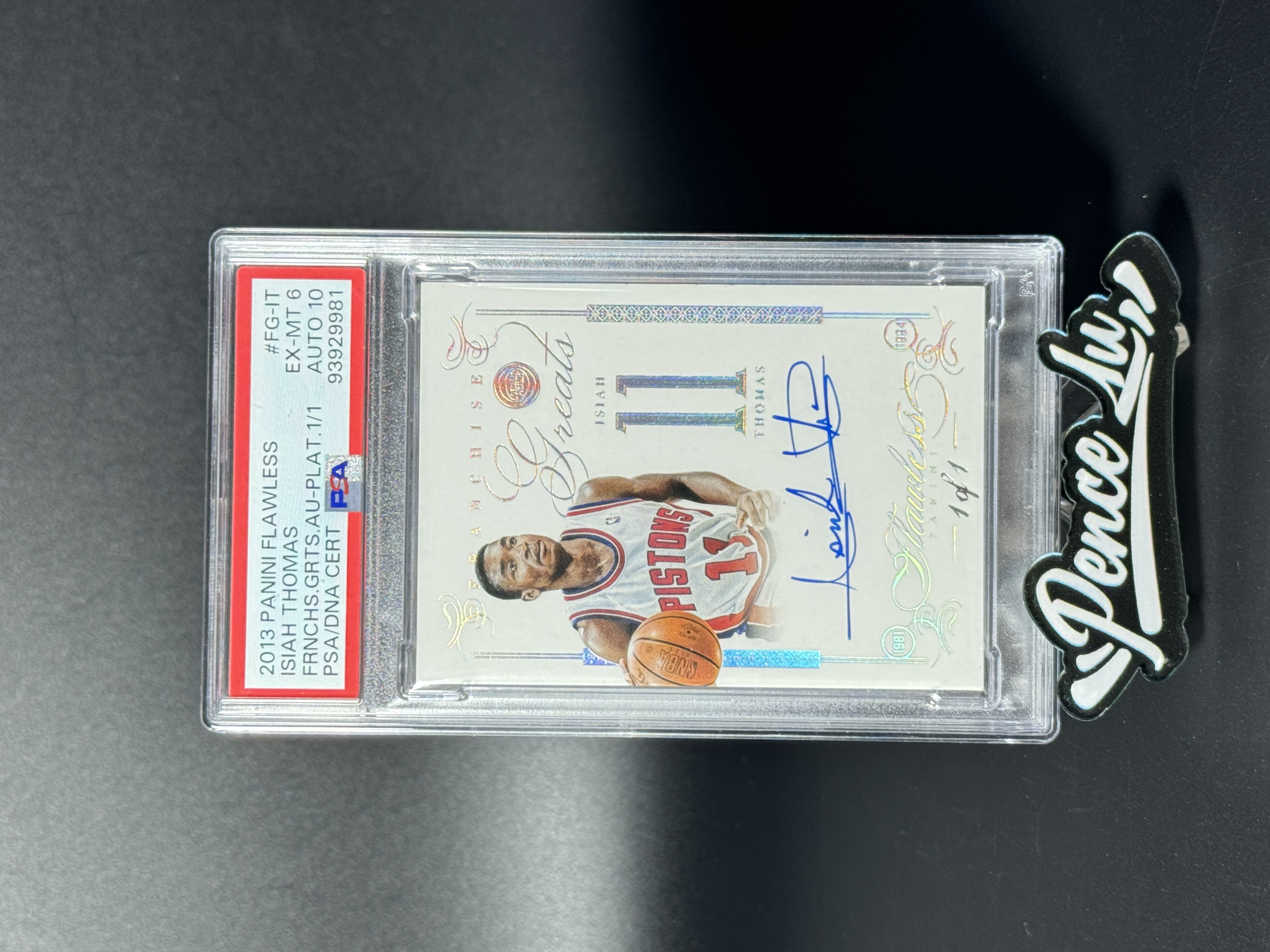 【喷子拍卖】2013-14 panini flawless Isiah Thomas 手提 底特律活塞 微笑刺客 托马斯 背号 签字 一编 白金闪版 1of1 卡签 大hit卡 PSA6/10 专收必备 Solomon