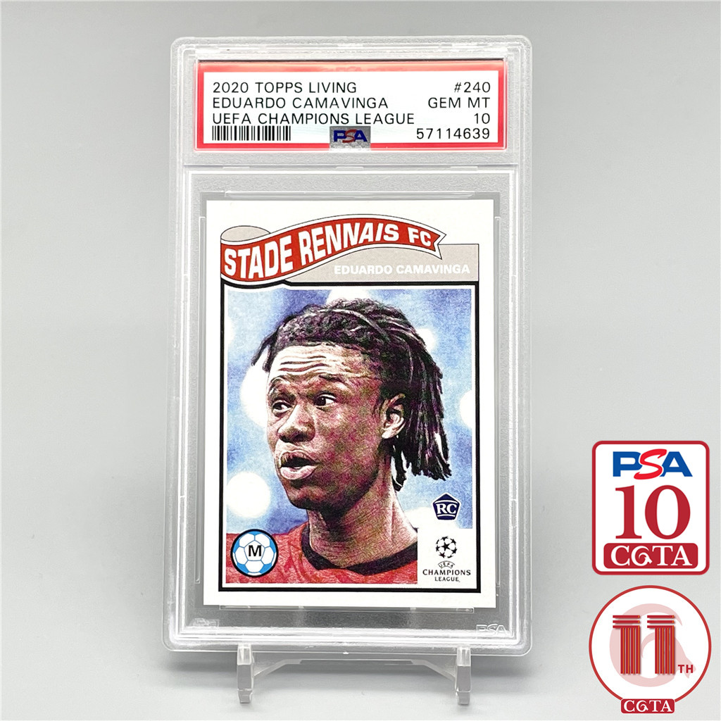 【CGTA越秀山P10专区】 2020 Topps 欧冠 Living 雷恩 卡马文加 RC新秀 油画肖像 普卡base #240 PSA评级10分 法国 皇马 Eduardo Camavinga YXS2538483