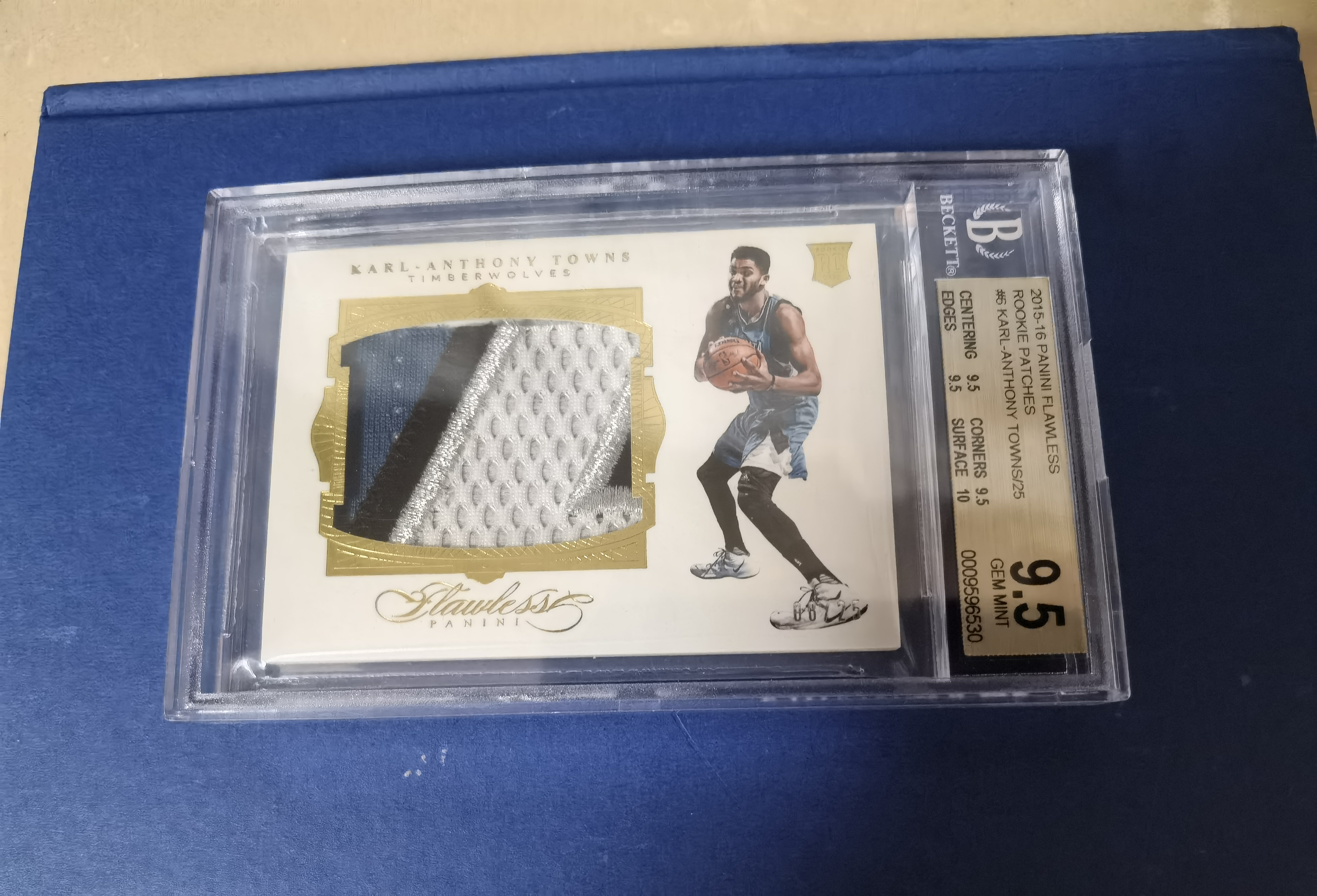 2015-16 Panini Flawless Karl Anthony Towns RC 唐斯Flawless系列RC暴力大窗口Patch,25编,BGS评级9.5分,3个9.5分1个10分,很难得