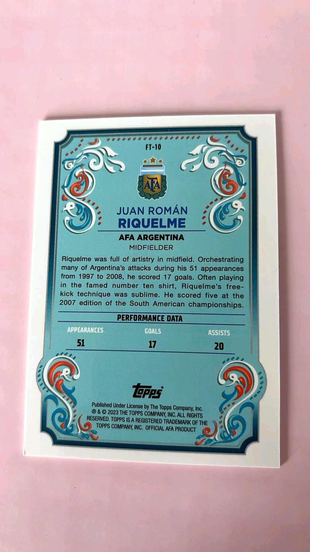[阿根廷专场] 2023 Topps Argentina Fileteado Juan Roman Riquelme 阿根廷菲勒特队盒 里克尔梅 厚卡base 收藏必备 菲勒特彩绘特卡 卡品如图