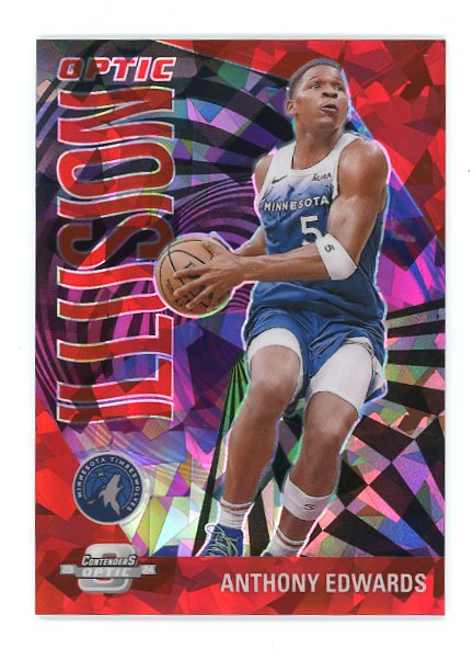 2023-24 Panini Contenders Optic Basketball Anthony Edwards Optic Illusion Red Cracked Ice #‘ed 126/175