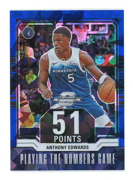 2023-24 Panini Contenders Optic Basketball Anthony Edwards Playing the Numbers Blue Cracked Ice #‘ed 19/75