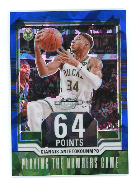 2023-24 Panini Contenders Optic Basketball Giannis Antetokounmpo Playing the Numbers Blue Cracked Ice #‘ed 26/75