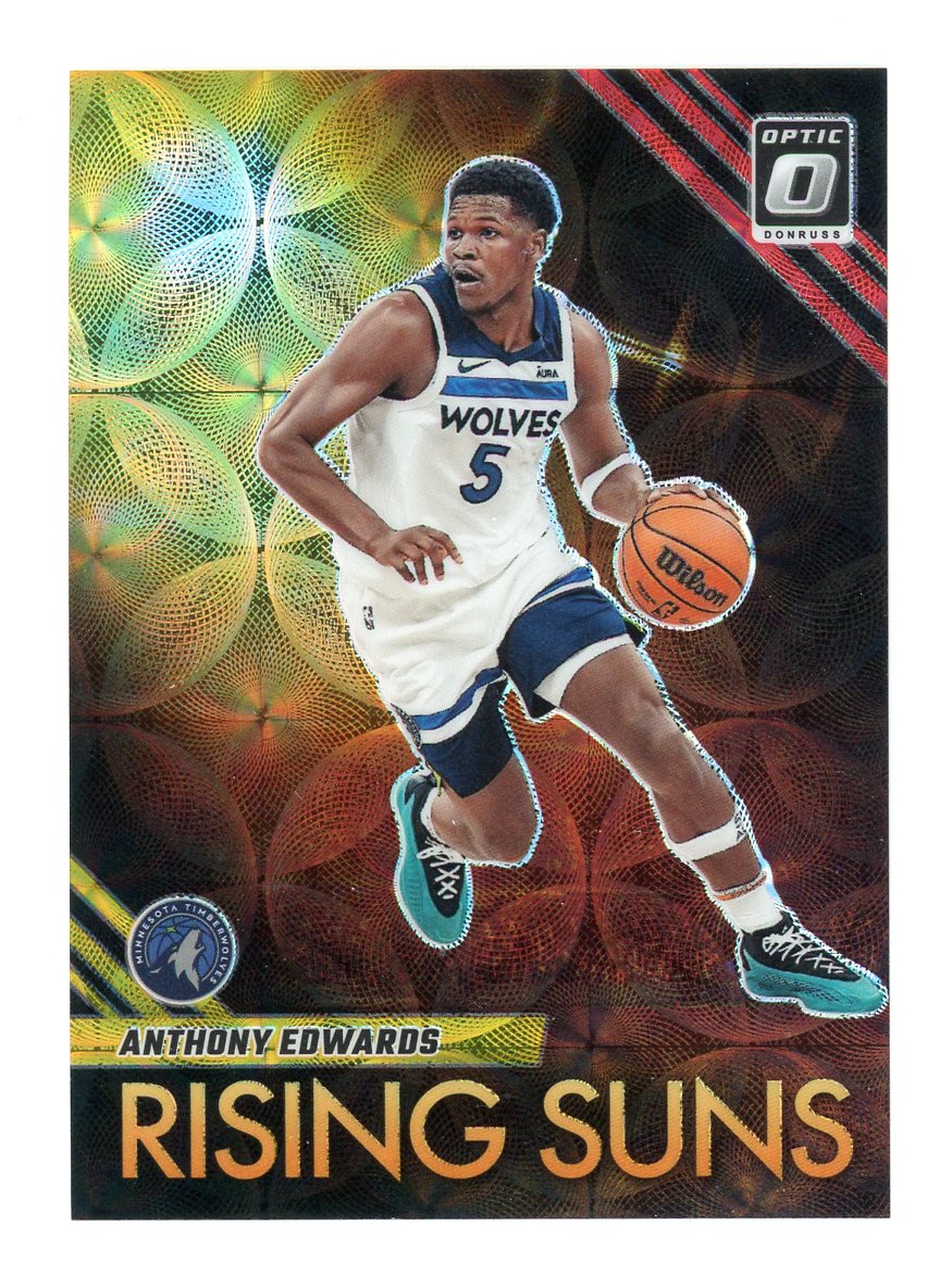 2023-24 Panini Donruss Optic Basketball Anthony Edwards Rising Suns Red and Gold International Prizm #‘ed 93/99