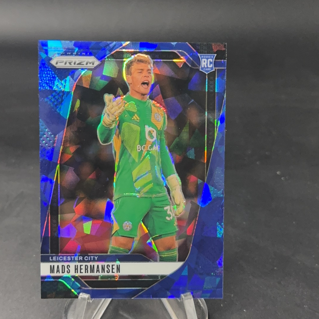 【AG拍卖】2024-25 Panini Prizm Mads Hermansen RC 英超Pz 莱斯特城 赫尔曼森 新秀 蓝碎冰折 58/75编 坤坤