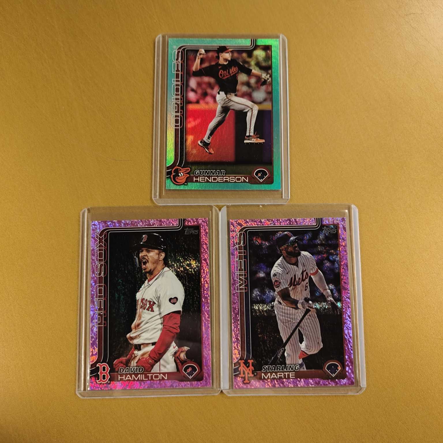 2025 Topps series 1 独占 青平行 粉碎点折 foil折 亨德森 汉密尔顿 马尔蒂 一图3张打包