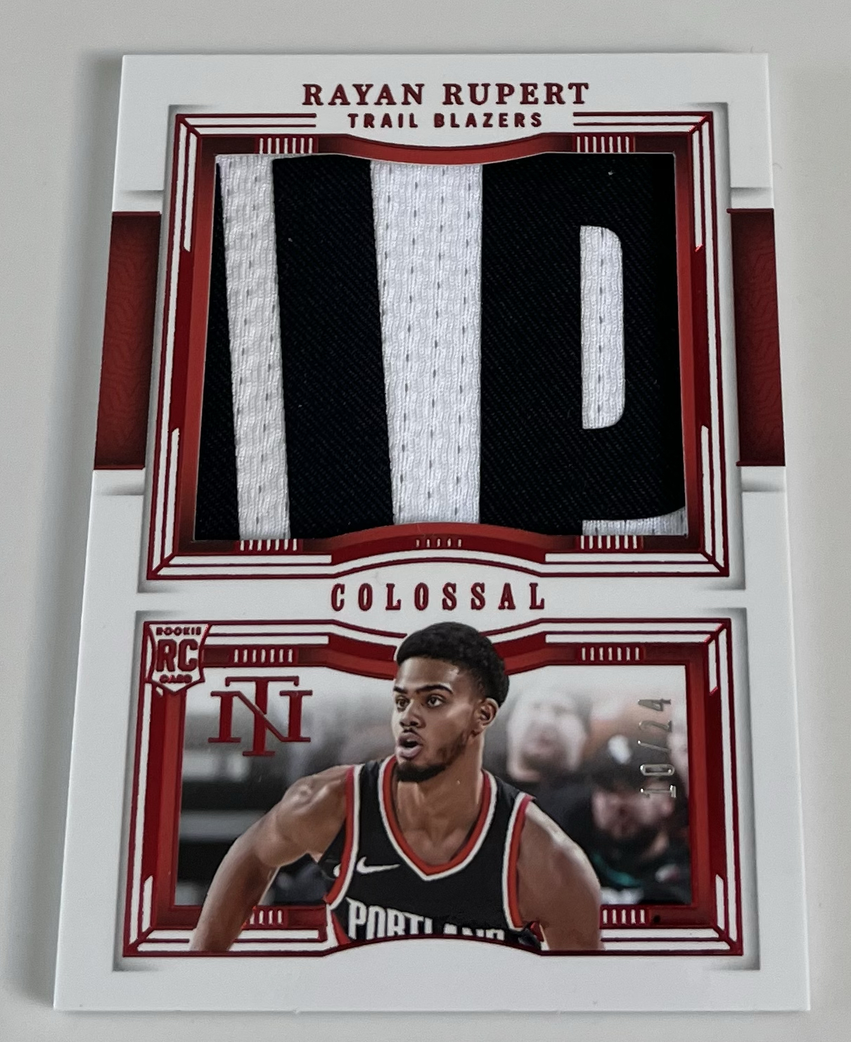 【小仙拍卖】子浩 2023-24 NT 国宝系列 开拓者 新秀RC 吕佩尔 Rayan Rupert 红色平行 Colossal 大窗双色Patch 真字母切割 限量/24编 专收凑套必备 图三边瑕疵