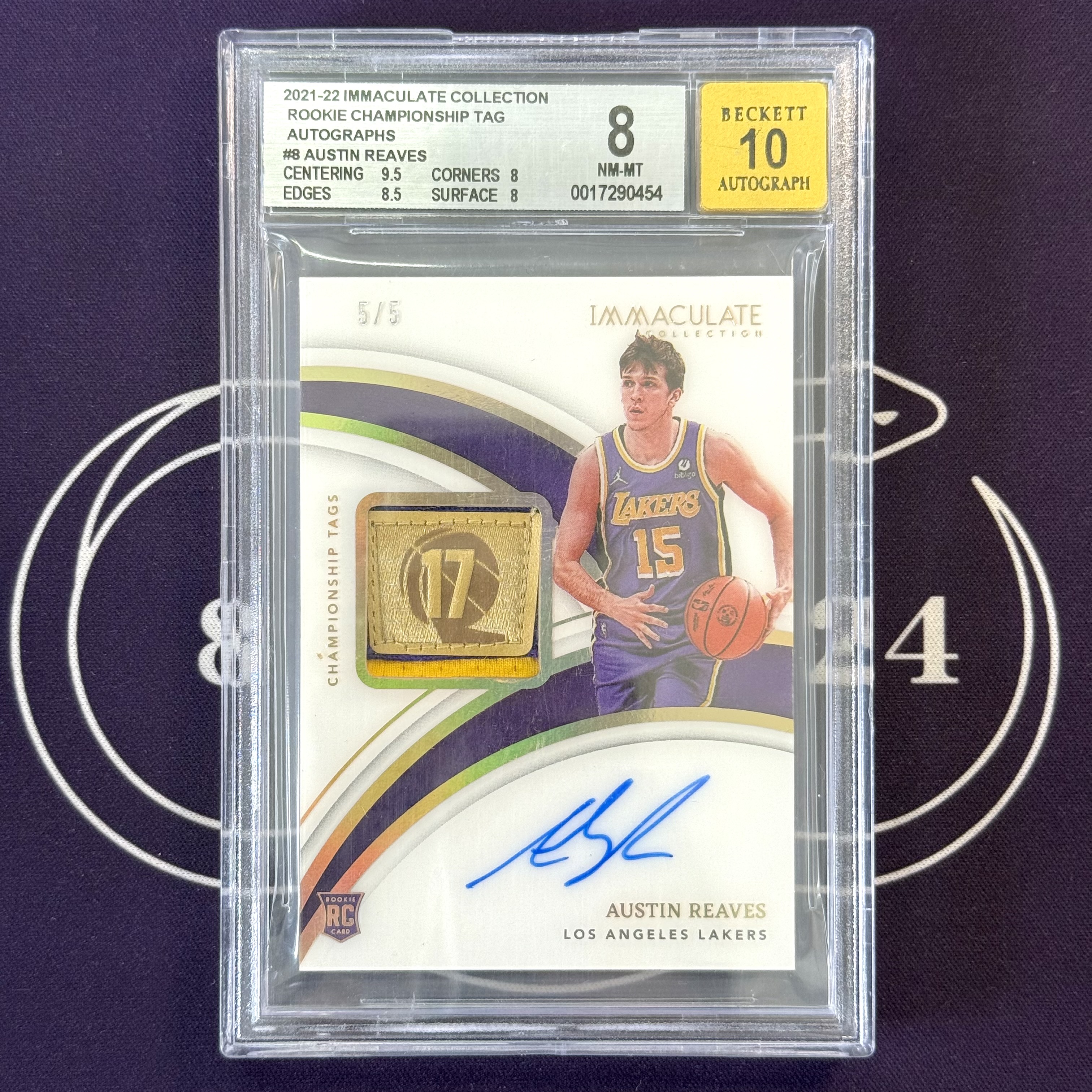 2021-22 Immaculate Austin Reaves【824拍卖】湖人 新秀 里夫斯 里弗斯 5/5编 RTA 签字 卡签 冠军 Tag切割 BGS8+10分 POP1 最好卡品墨迹ZS