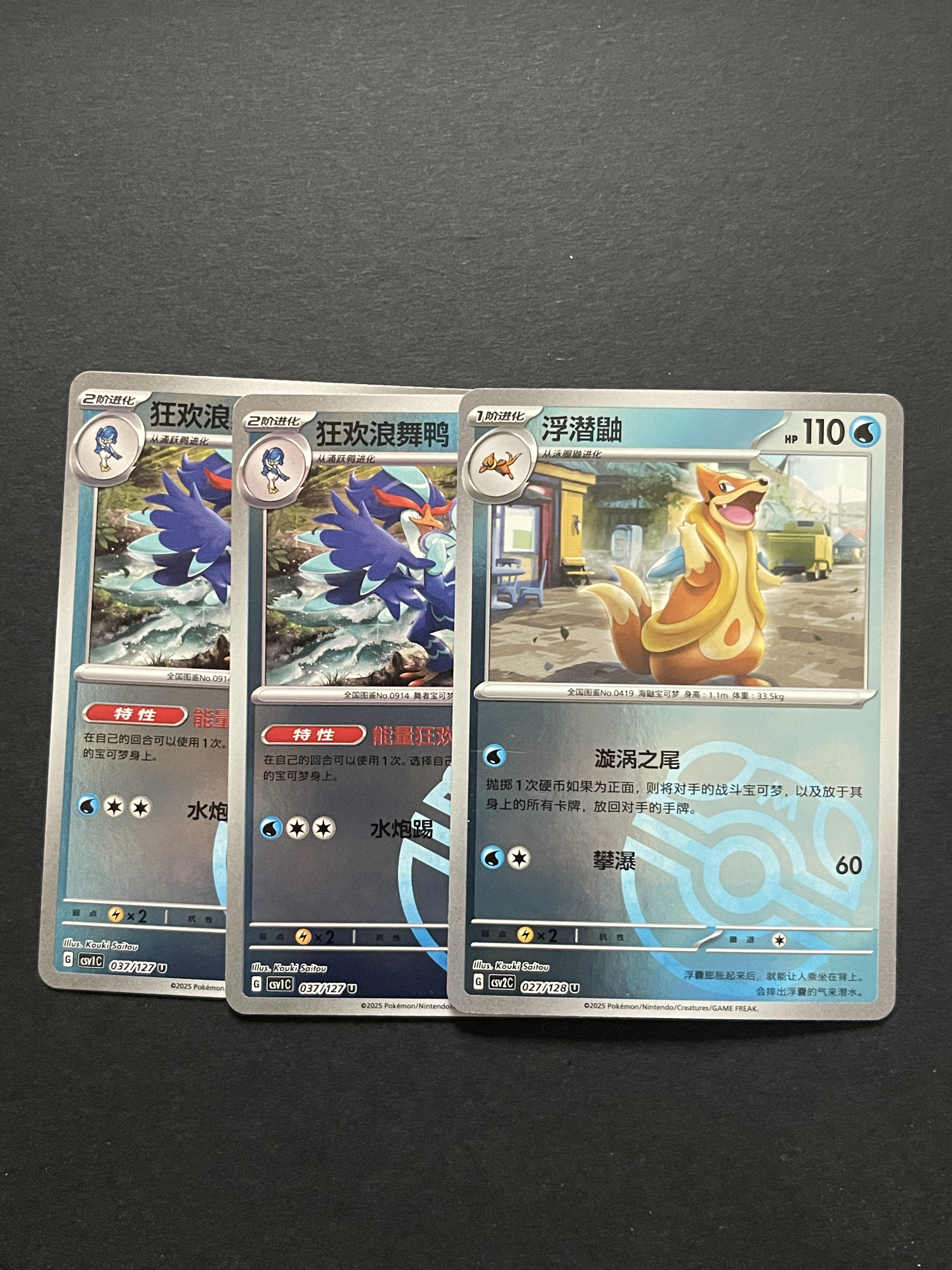 【蒜头评级+代卖】2025 Pokemon 宝可梦 TCG chs 简中 狂欢浪舞鸭 浮潜鼬 U大师球闪 3张打包 卡组 打牌 收藏 凑套必备 SH