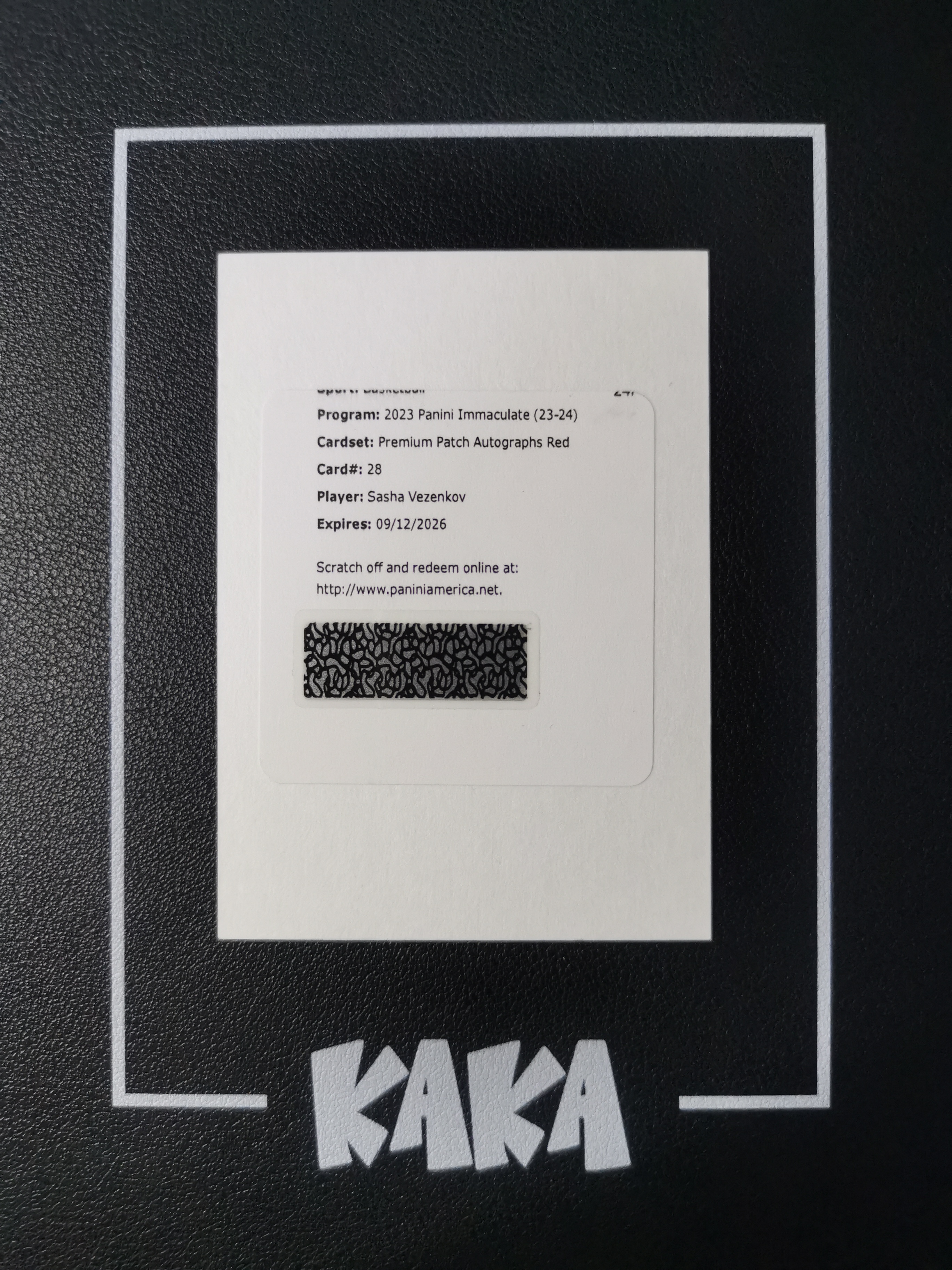 【KAKA】2023-24 Immaculate Sasha Vezenkov 爱咪咪 国王 萨沙 维琴科夫 /25编 红平行 PPA 卡签 球衣 Patch 签字 系列博点 交换板 八一