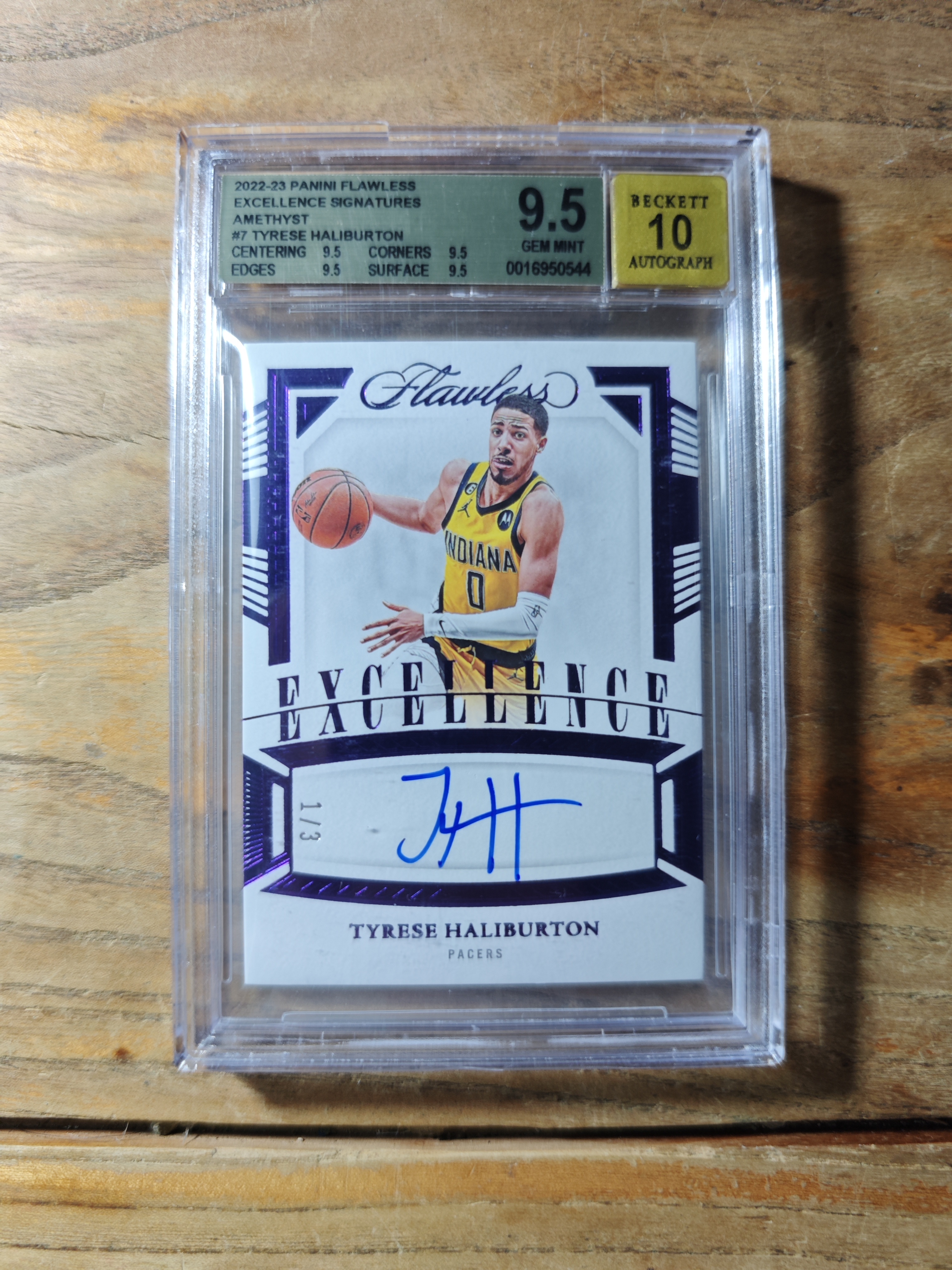 2022-23 Panini Flawless Tyrese Haliburton 【咔嚓拍卖】步行者国王 哈利伯顿 紫平行签字1/3首编BGS9.5/10金标 大热凑套专收必备 红星