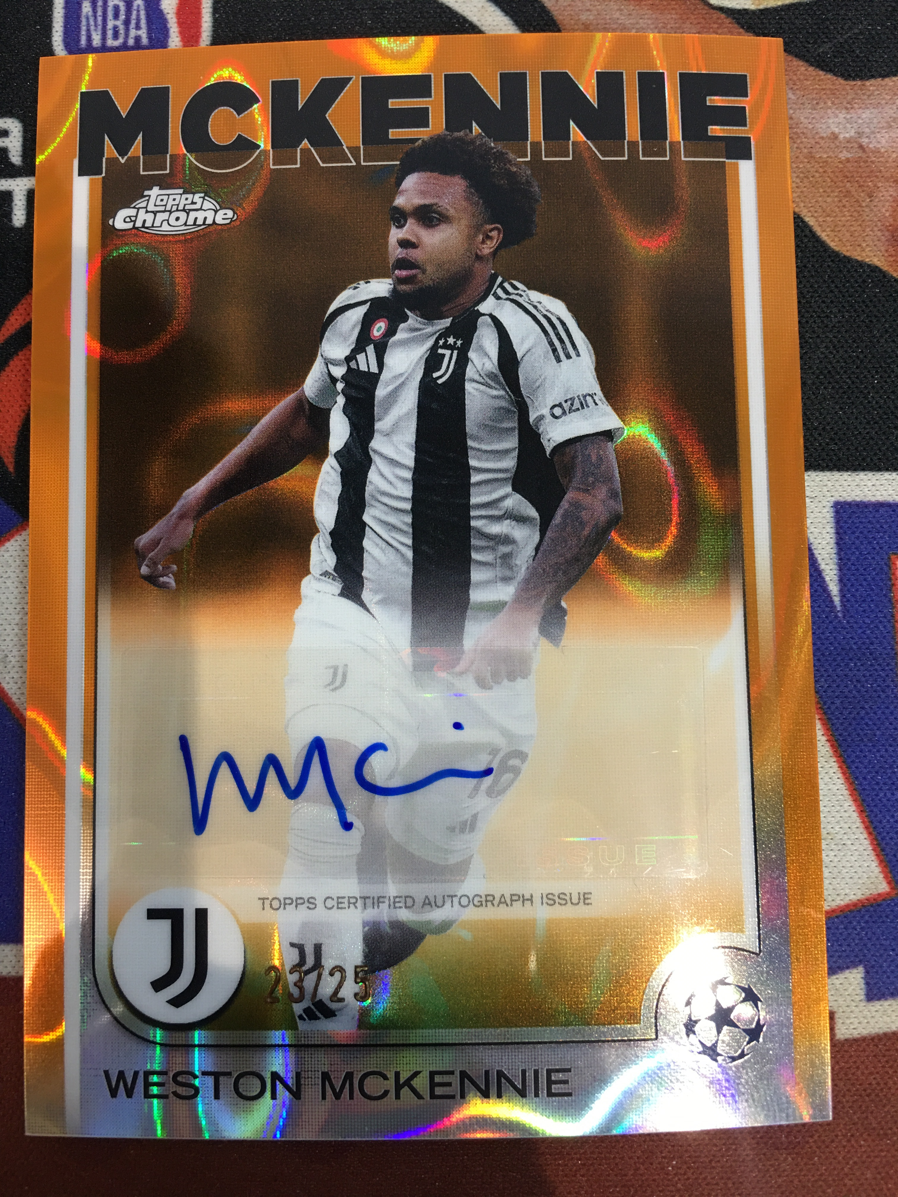 2024-25 Topps chrome Weston McKennie 【Henry House】尤文图斯 美国 麦肯尼 23/25 橙熔岩折限量 签名 签字!!!!momo